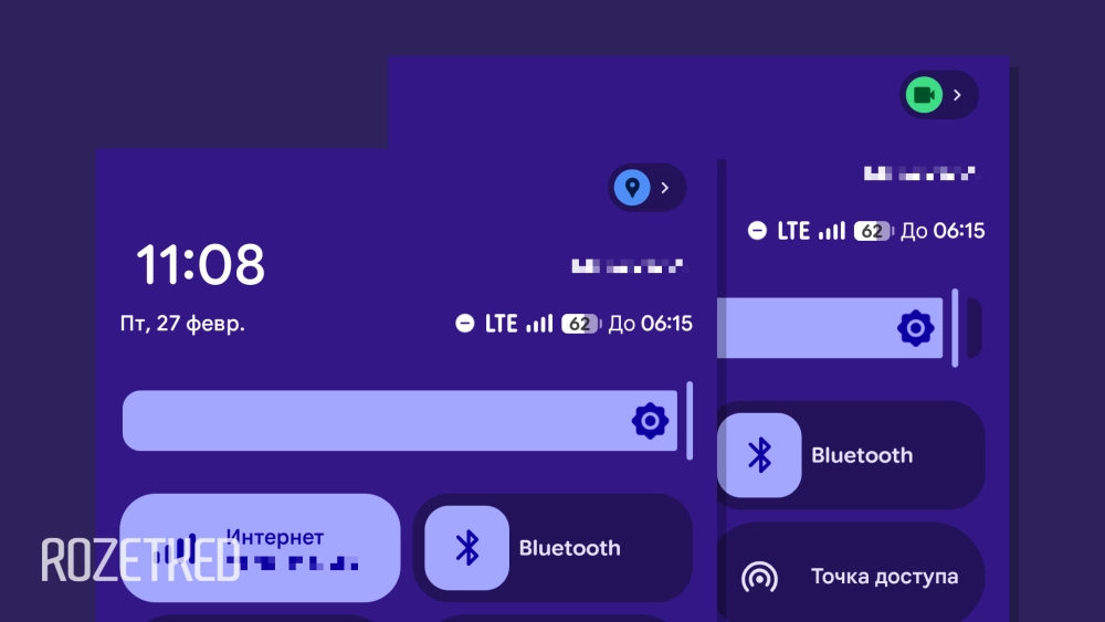 - Индикаторы использования местоположения, камеры или микрофона в шторке быстрых настроек получили более заметные значки.