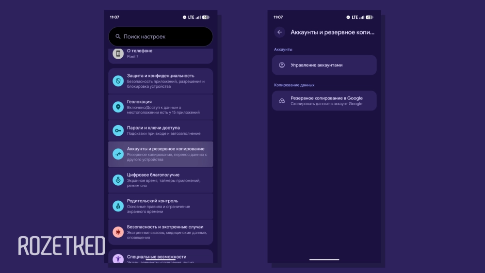 - Разделы настроек «Аккаунты» и «Резервное копирование» объединены в отдельный пункт «Аккаунты и резервное копирование».