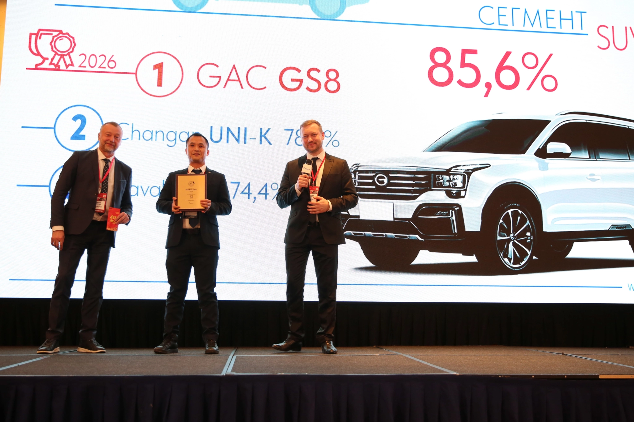 По итогам ежегодного исследования Residual Value – 2026, подготовленного аналитическим агентством «Автостат», модель получила отметку 85,6%. Таким образом, GAC GS8 обошёл конкурентов от Changan (78,8%) и Haval (74,4%).