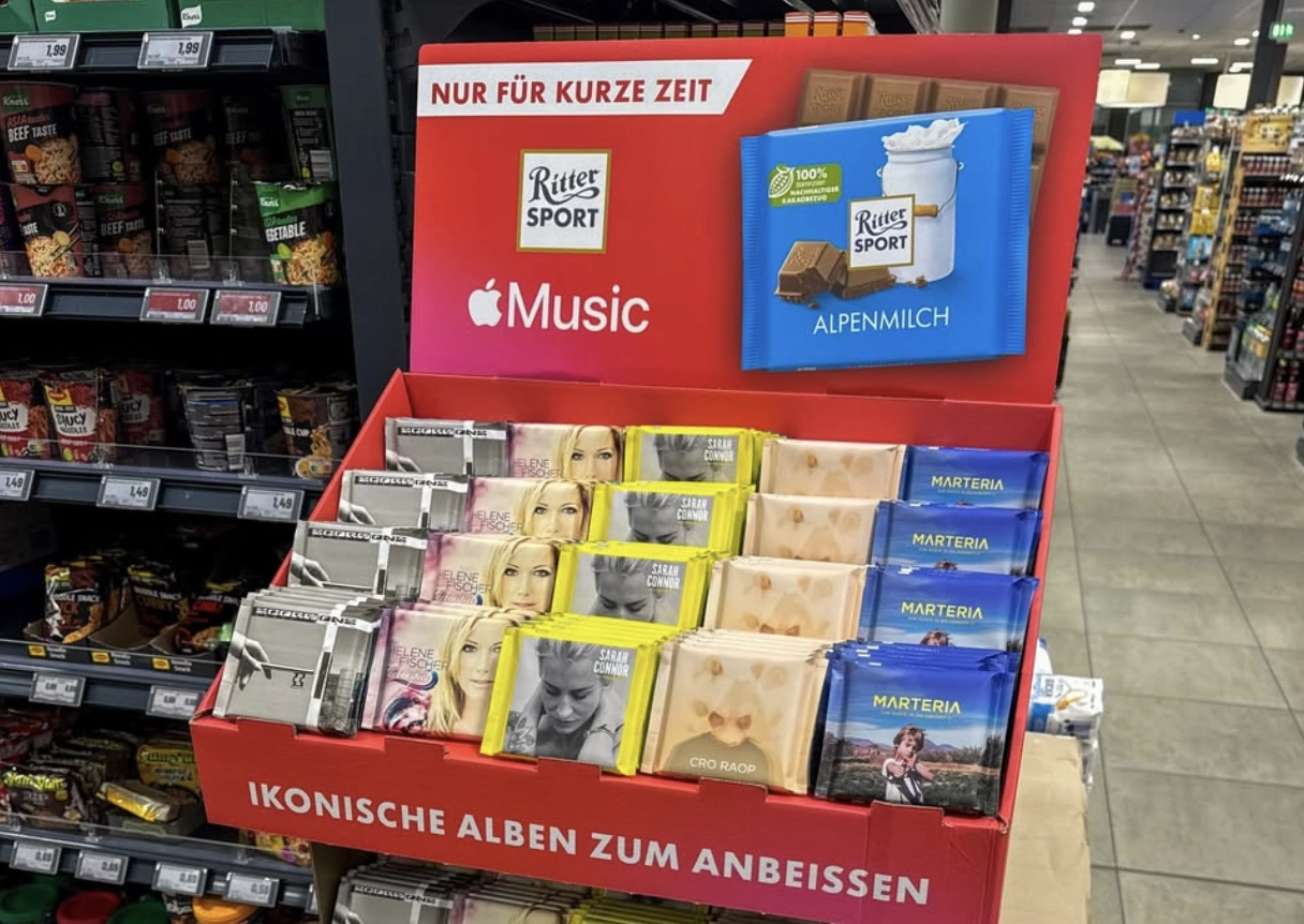 Apple и немецкий бренд шоколада Ritter Sport объявили о запуске необычной акции. В продаже появится лимитированная серия шоколадных плиток Ritter Sport с QR-кодами для Apple Music внутри.