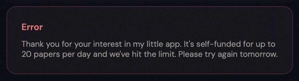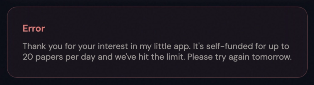 Однако у Now I Get It! есть одно важное ограничение: в день сервис может обрабатывать только до 20 научных статей — по крайней мере, сейчас. Это ограничение действует сразу для всех — как только платформа создаст 20 веб-страниц, доступ к ней закроется до завтра.
