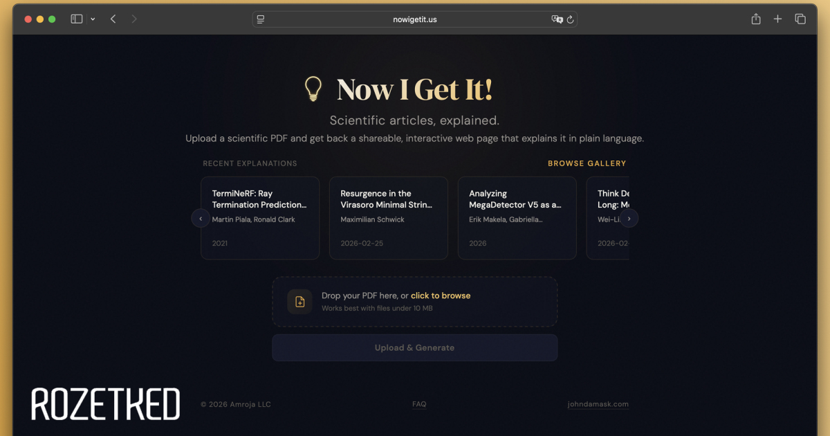 Разработчик-энтузиаст под ником jbdamask поделился в сети своим проектом под названием Now I Get It! — это веб-сайт, который превращает научные статьи в интерактивные веб-страницы. Пользоваться Now I Get It! можно прямо в браузере.