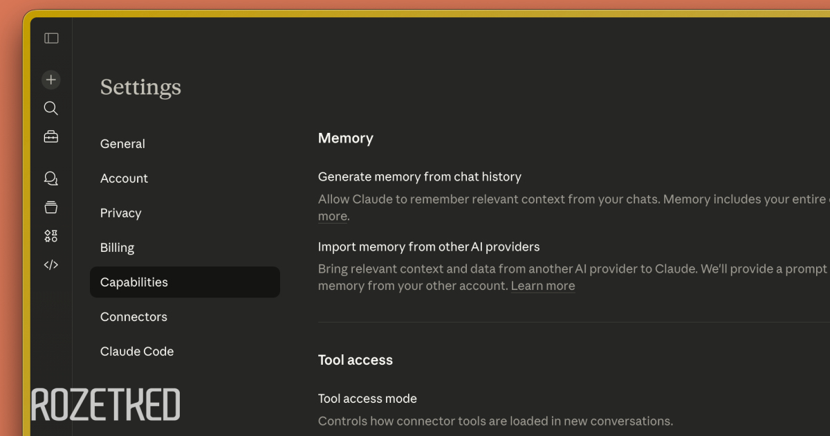 Память необходимо активировать вручную в настройках (Settings → Capabilities). Там же есть функция импорта истории из других ИИ-сервисов.