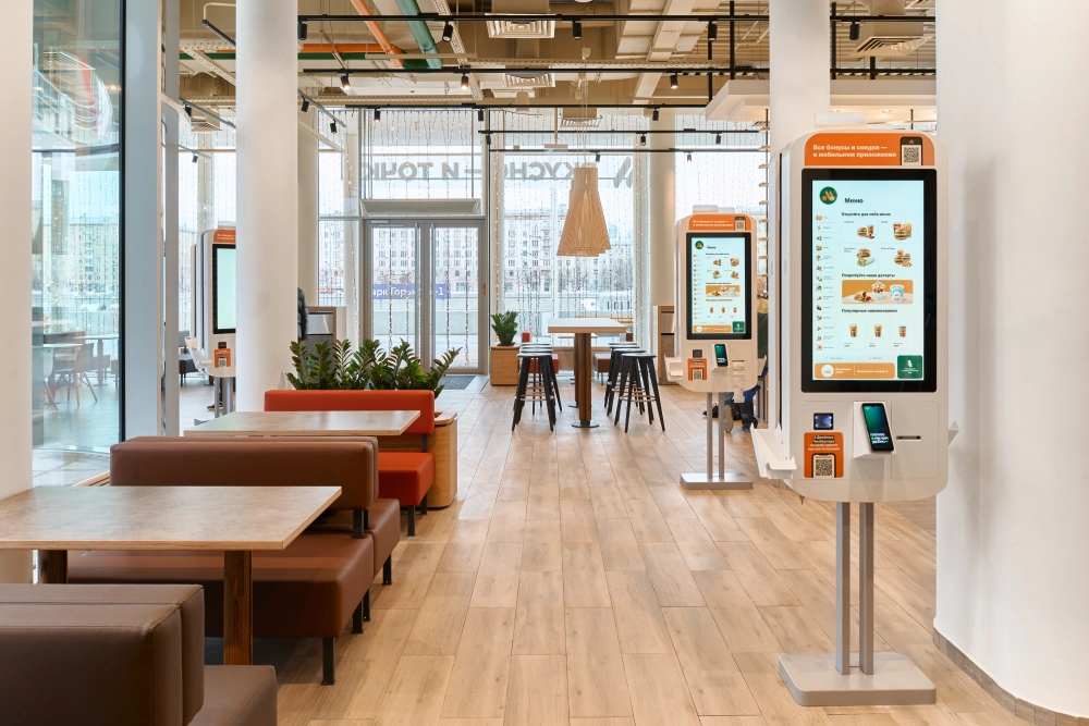 В ресторане предусмотрен бесконтактный формат обслуживания: посетители смогут сделать заказ с помощью киосков самообслуживания или через мобильное приложение сети. Заказы за стол будут доставлять роботы-помощники. Они также будут следить за чистотой в зале, отмечают в компании.