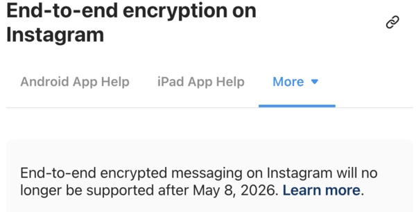 Meta* полностью прекращает поддержку сквозного шифрования E2EE для личных сообщений в Instagram*. Информацию об этом обнаружил ресурс PiunikaWeb в обновлённых правилах Справочного центра социальной сети.