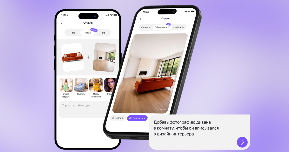Все эти опции доступны в чате с «Алисой AI» на сайте, в приложениях «Алиса AI», «Яндекс с Алисой AI» и в «Яндекс Браузере».