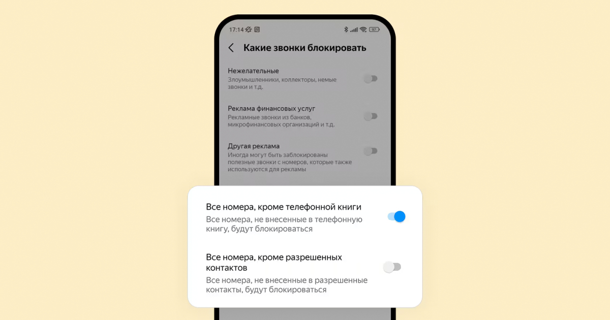 Раньше с помощью определителя номера «Яндекса» можно было автоматически отклонять только звонки с номеров конкретных категорий — например, рекламные.