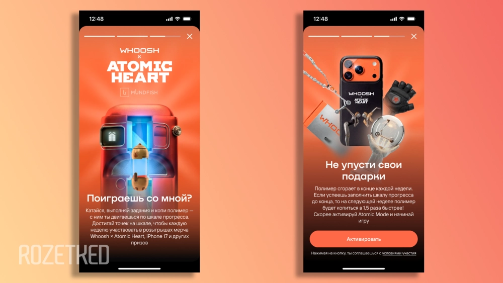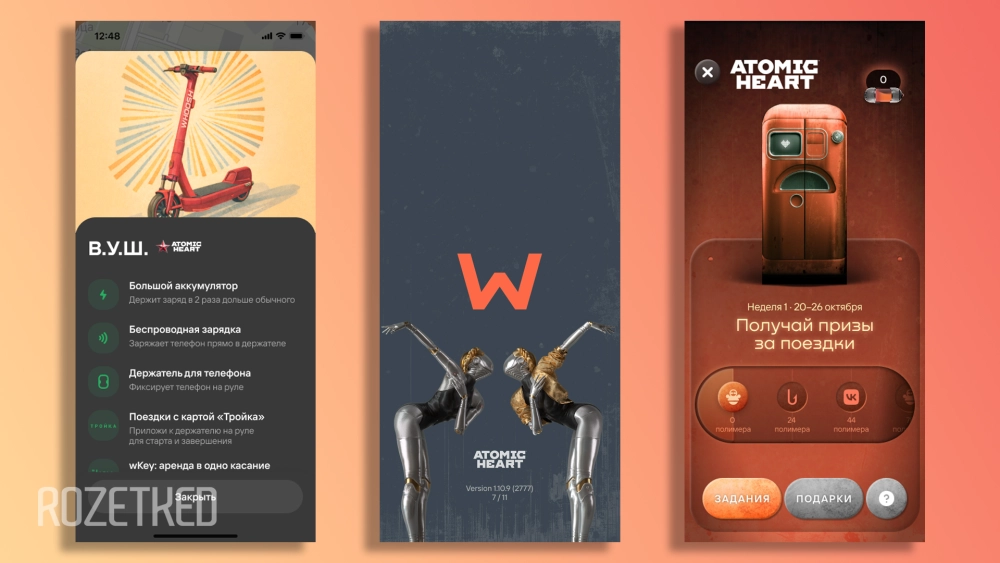Сервис аренды самокатов Whoosh и команда Atomic Heart рассказали Rozetked о запуске коллаборации — как в виртуальном, так и в реальном мирах. В рамках сотрудничества пользователям кикшеринга и фанатам игры доступны специальный режим в приложении Whoosh, «атомные» самокаты на улицах и игровые активности в России и других странах.