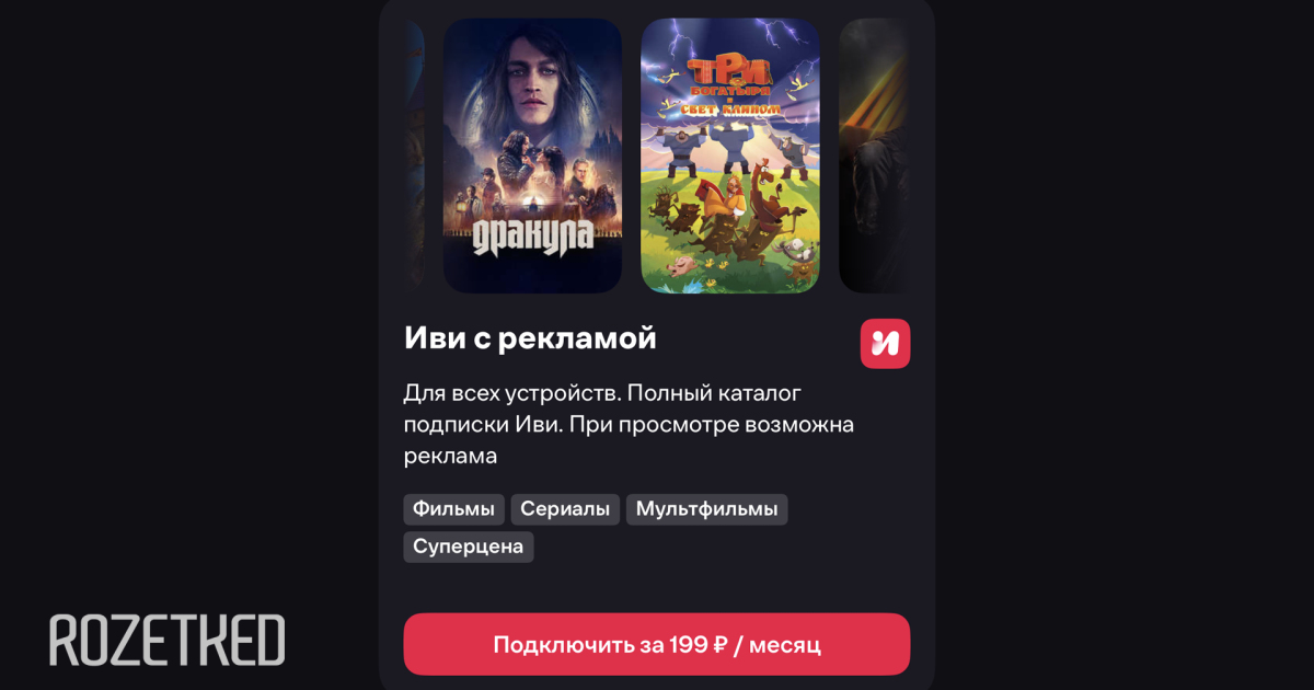 «Иви» запускает новый тарифный план за 199 рублей в месяц, что всего на 50 рублей дешевле стандартной подписки. Этот тариф отличается наличием рекламы внутри контента — такой же тариф, например, есть у Netflix.