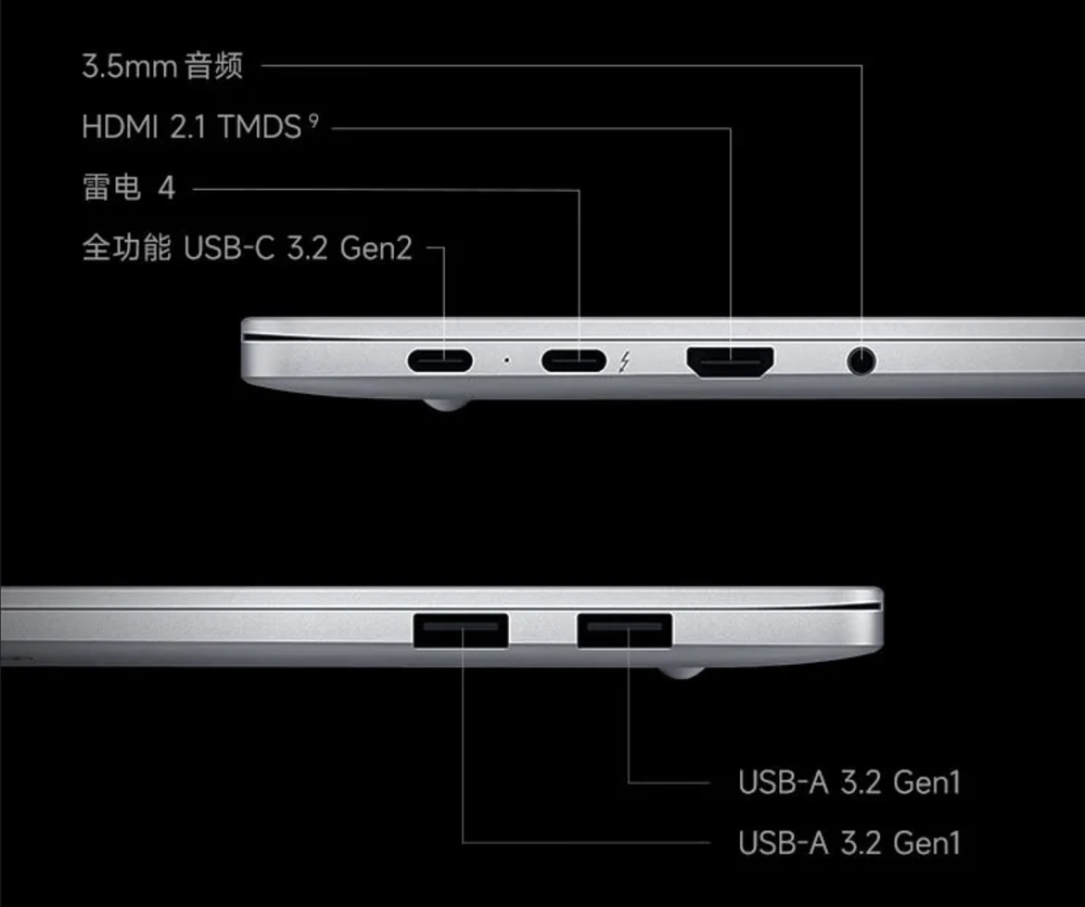 Оба ноутбука получили одинаково богатый набор портов: два USB-A стандарта 3.2 Gen 1, разъём 3,5 мм, выход HDMI и два порта USB-C: один 3.2 Gen 2, второй — Thunderbolt 4.