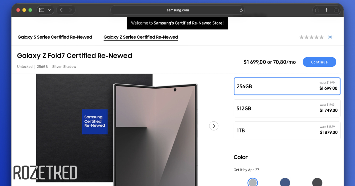 Сейчас же цены на новые Z Fold 7 и Z Flip 7 заметно ниже. Например, базовая конфигурация Z Fold 7 на 256 ГБ стоит на официальном сайте Samsung 1600 долларов (~119 600 рублей), что на 100 долларов дешевле, чем Re-Newed.