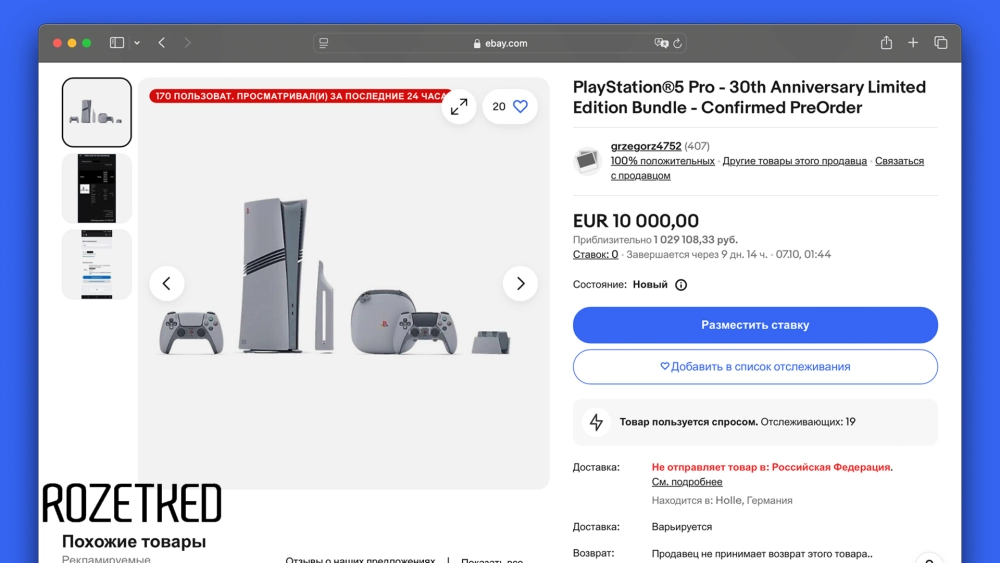 Старт продаж намечен на 21 ноября. Будут ли Sony и eBay вмешиваться в ситуацию — неизвестно.
