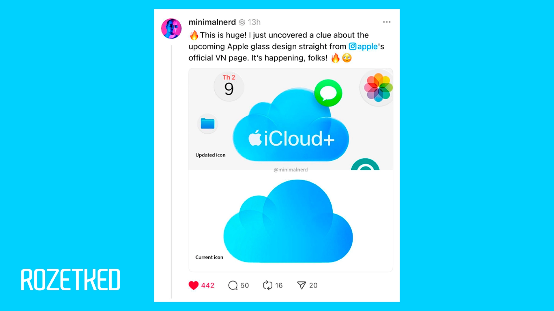 Вьетнамский аккаунт Apple в Facebook* опубликовал рекламу iCloud. Пользователи обратили внимание, что логотип iCloud+ выглядит иначе, он более прозрачный, чем в нынешней версии iOS. Там же показывают круглые иконки приложений, похожие на те, что используются в visionOS.