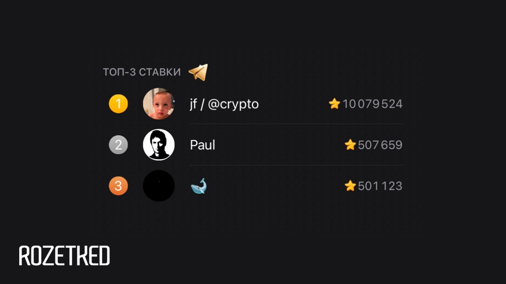 Результаты первого раунда уже впечатляют: последняя самая высокая ставка составила 10 млн «звёзд», что эквивалентно почти 18 млн рублей. Всего запланировано 50 раундов, в каждом из которых 20 подарков получат 20 лучших участников.