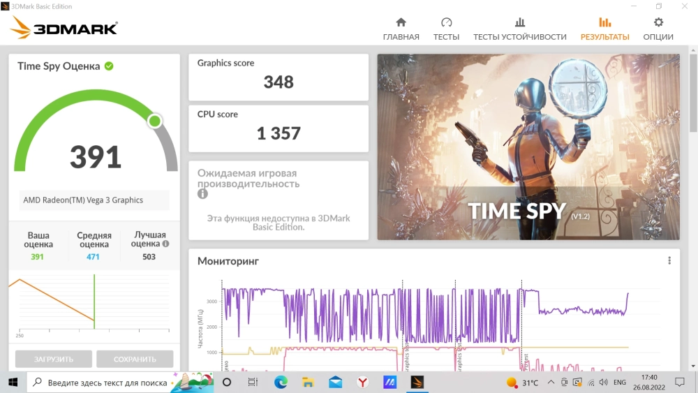 ExpertBook с третьим Ryzen спокойно справляется с синтетическими тестами и показывает неплохие результаты для своего ценового сегмента. В графическом тесте 3DMARK ноутбук выдал тоже приемлемый результат.