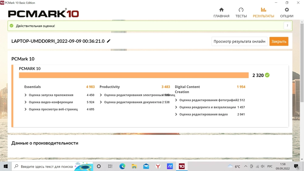 Пройдёмся «по базе» — естественно, я прогнал ноутбук в тесте PCMark 10, и результат приятно удивил. Это то, что я ожидал от ноутбука, и даже больше!