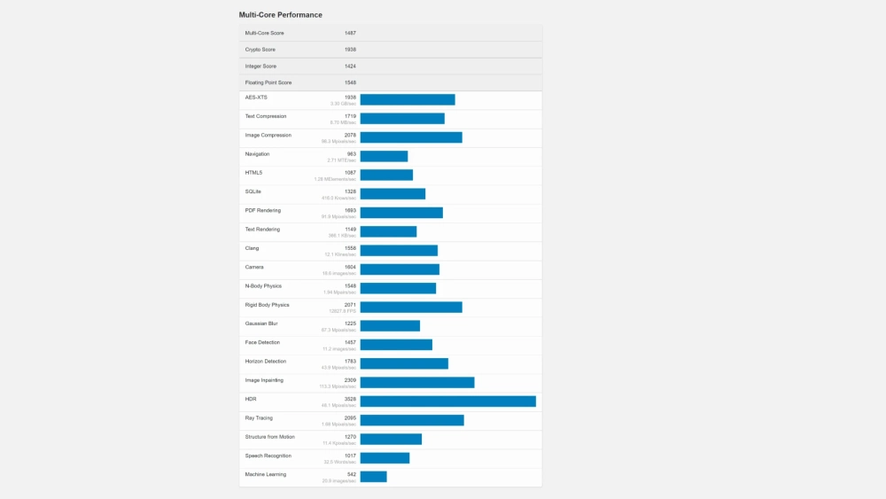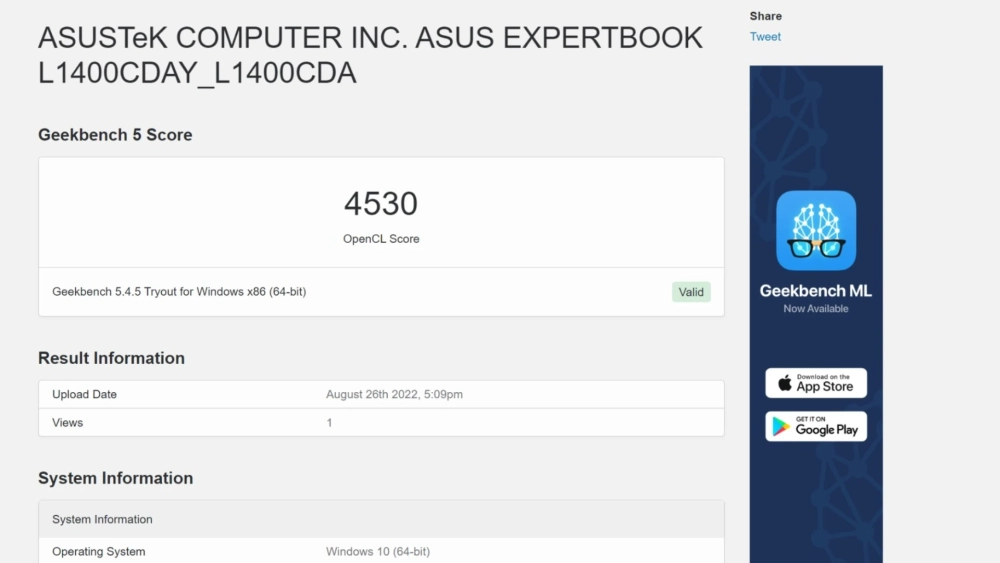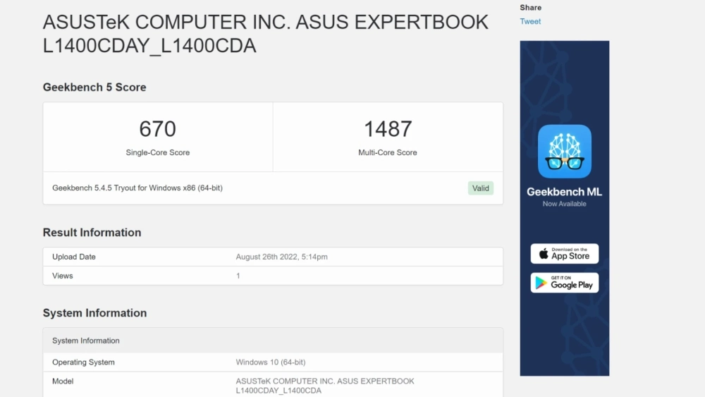 Ещё раз, вот основные характеристики «начинки» ноутбука и ещё один тест — на этот раз Geekbench 5. Результаты вновь приятно удивили.