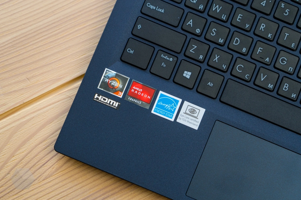 Переходим к главному — к сердцу Asus ExpertBook, его чипу — AMD Ryzen 3. Это двухъядерный процессор с четырьмя потоками. Работают они на базовой частоте в 2,6 ГГц, но разгоняются и до 3,5 ГГц.
