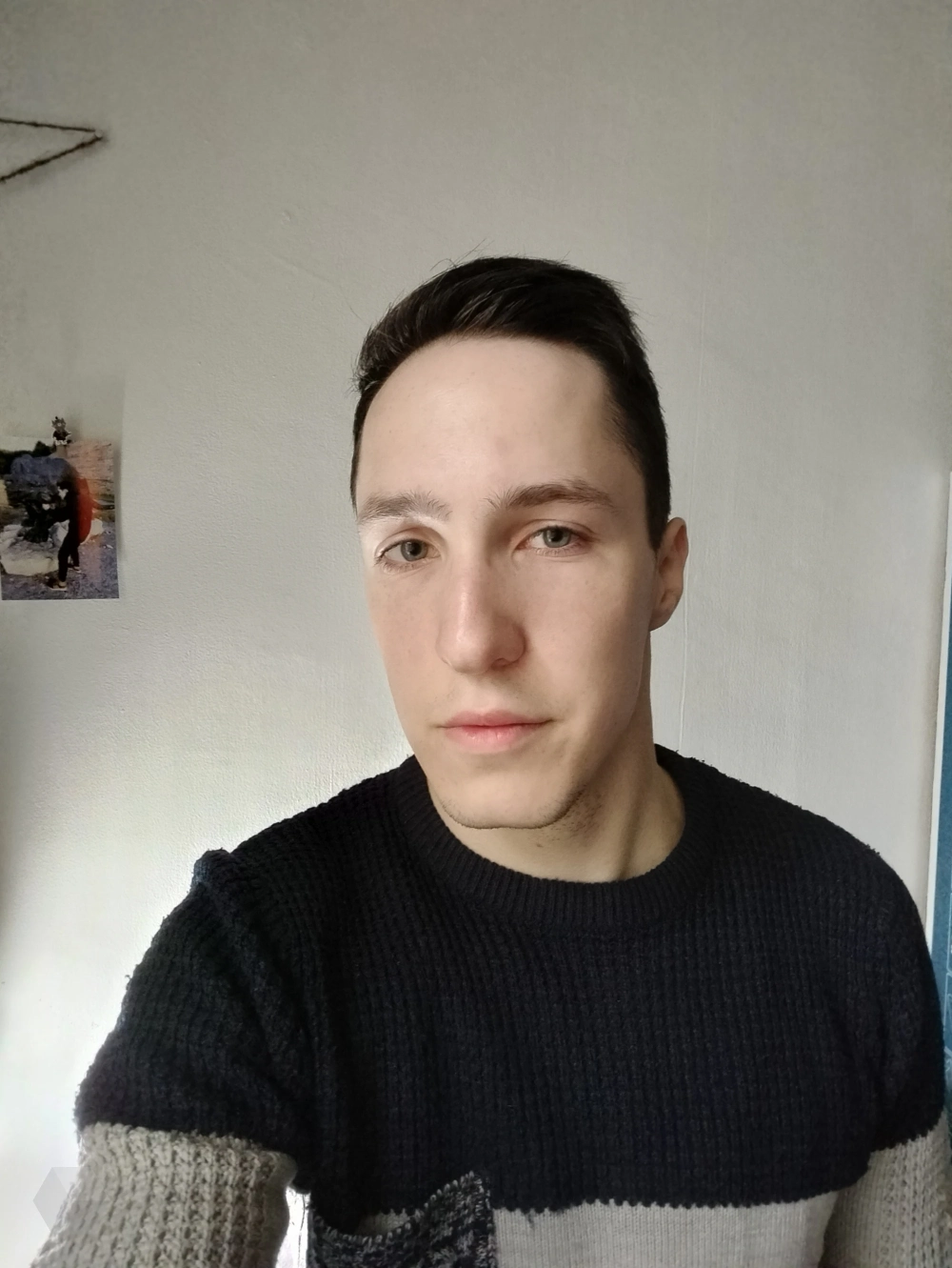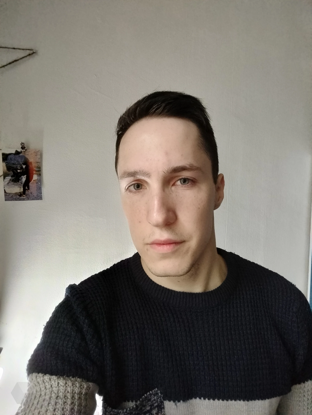 Фронтальная камера на 32 Мп, не шумит, кадры получаются резкими. Есть режим улучшайзеров, в нём можно убрать себе щёки, выровнять тон кожи, расширить глаза, и всё регулируется в отдельности. Сделал два кадра, первый без коррекции, второй с автоматическим улучшением.