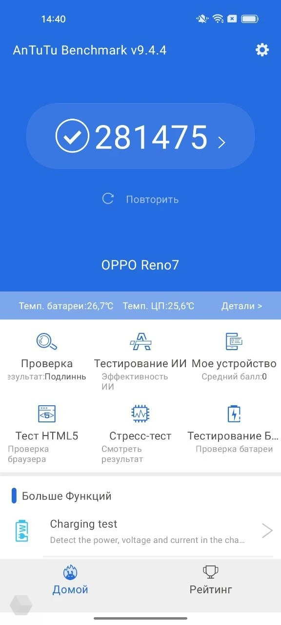 Сразу же запустил тест Antutu и получил почти 287 000 попугаев. Результат для середнячка достойный, и не стоит забывать, что под процессоры Qualcomm обычно неплохо оптимизируют софт.