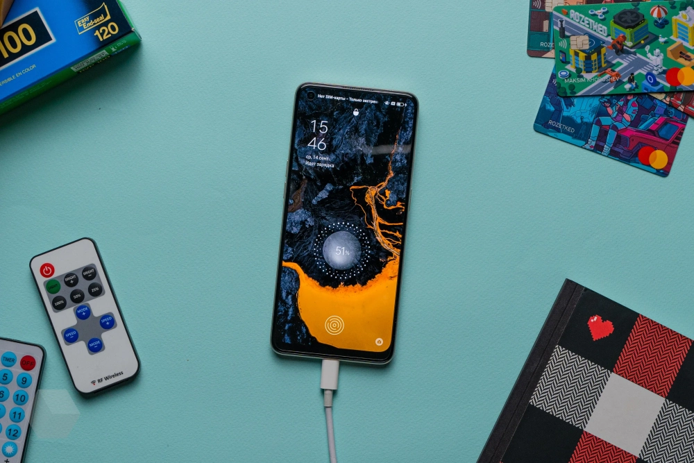 В коробке находится сам смартфон, документация, кабель с USB-A на Type-C, блок быстрой зарядки SUPERVOOC на 33 Вт и толстый силиконовый чехол.