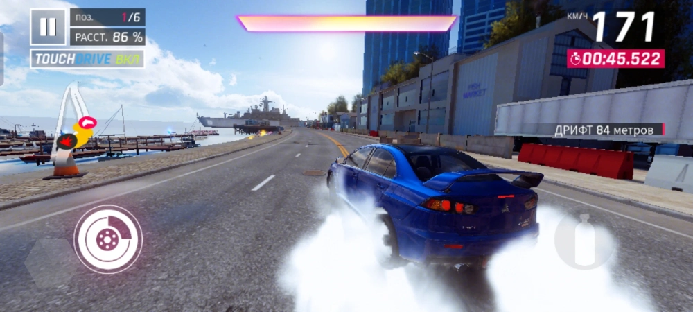 Asphalt 8 идёт на средних настройках, на высоких начинается падение FPS где-то до 30 кадров в секунду. В игре заметно отсутствие сглаживание, видны лесенки на краях объектов. А производительности не хватает для отрисовки 90 кадров, так бы было видно повышенную герцовку экрана.