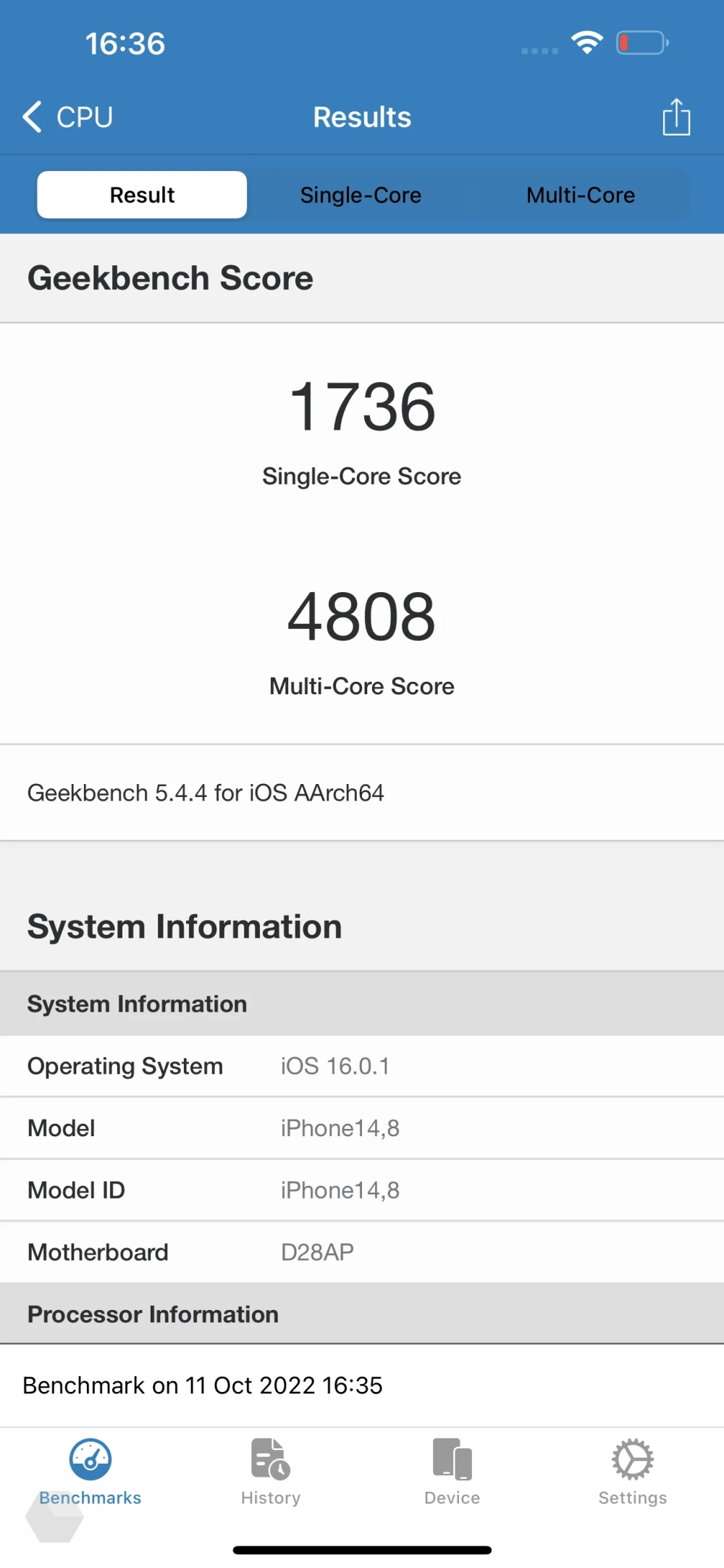 - ОС: iOS 16
