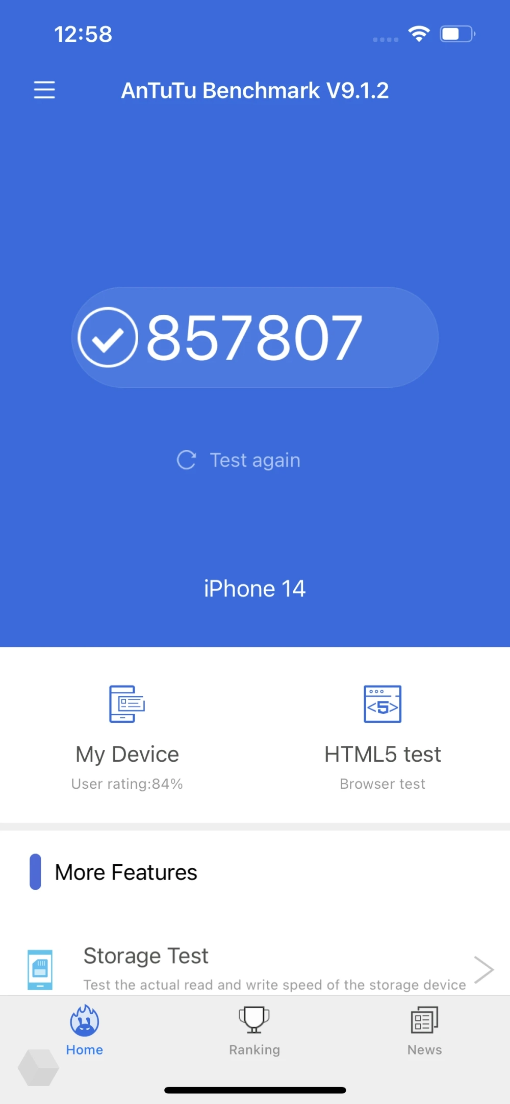 iPhone 14 работает под управлением 6-ядерного Apple A15 Bionic, которому исполнился год. Да, хотелось бы видеть в телефоне за такие деньги новый чип, тем более старшие Pro получили A16. С другой стороны, и A15 — это очень производительное решение с большим запасом на будущее.