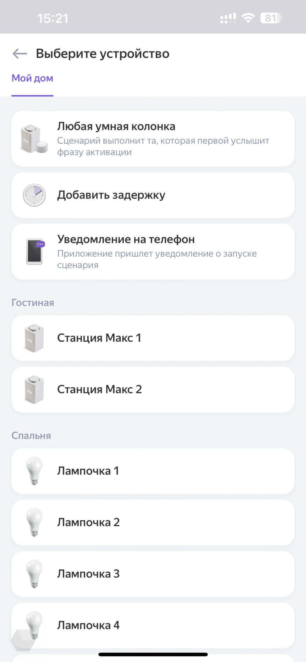 - И вот только теперь можно использовать «Алису» для управления той самой лампой.