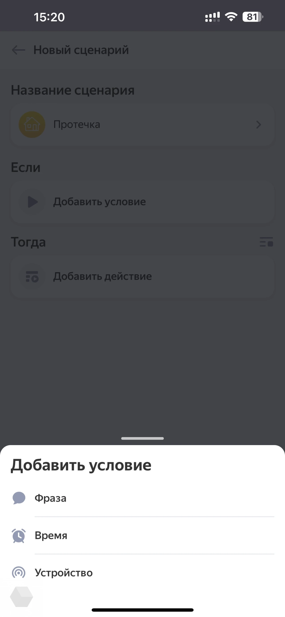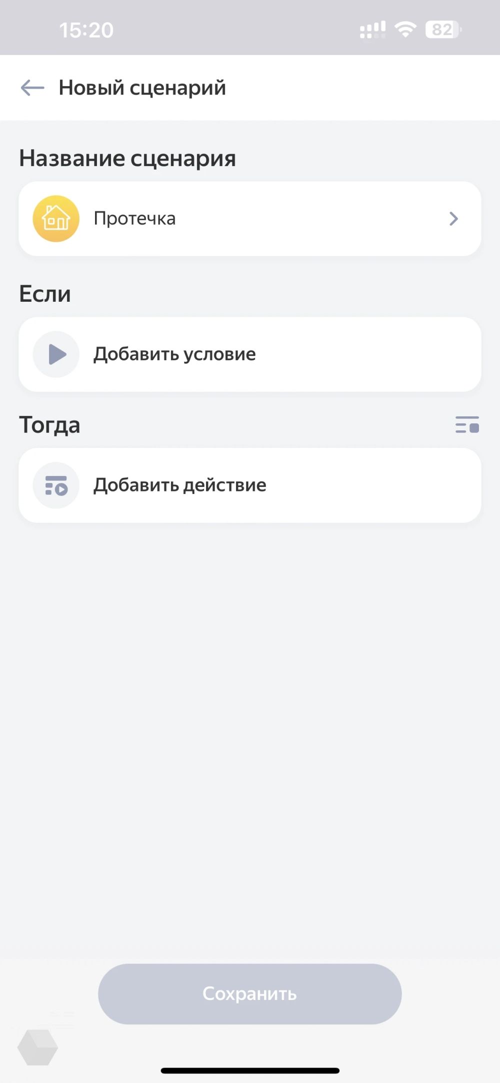 Подытожу про Zigbee. Локальные сценарии можно настроить только между Zigbee-устройствами и без команд, которые бы обращались к интернету. Но без интернета «Алиса» не сможет получить и сообщить никакую информацию с устройств: температуру в доме, статус работы датчика протечки, движения и так далее. Это нужно учитывать.