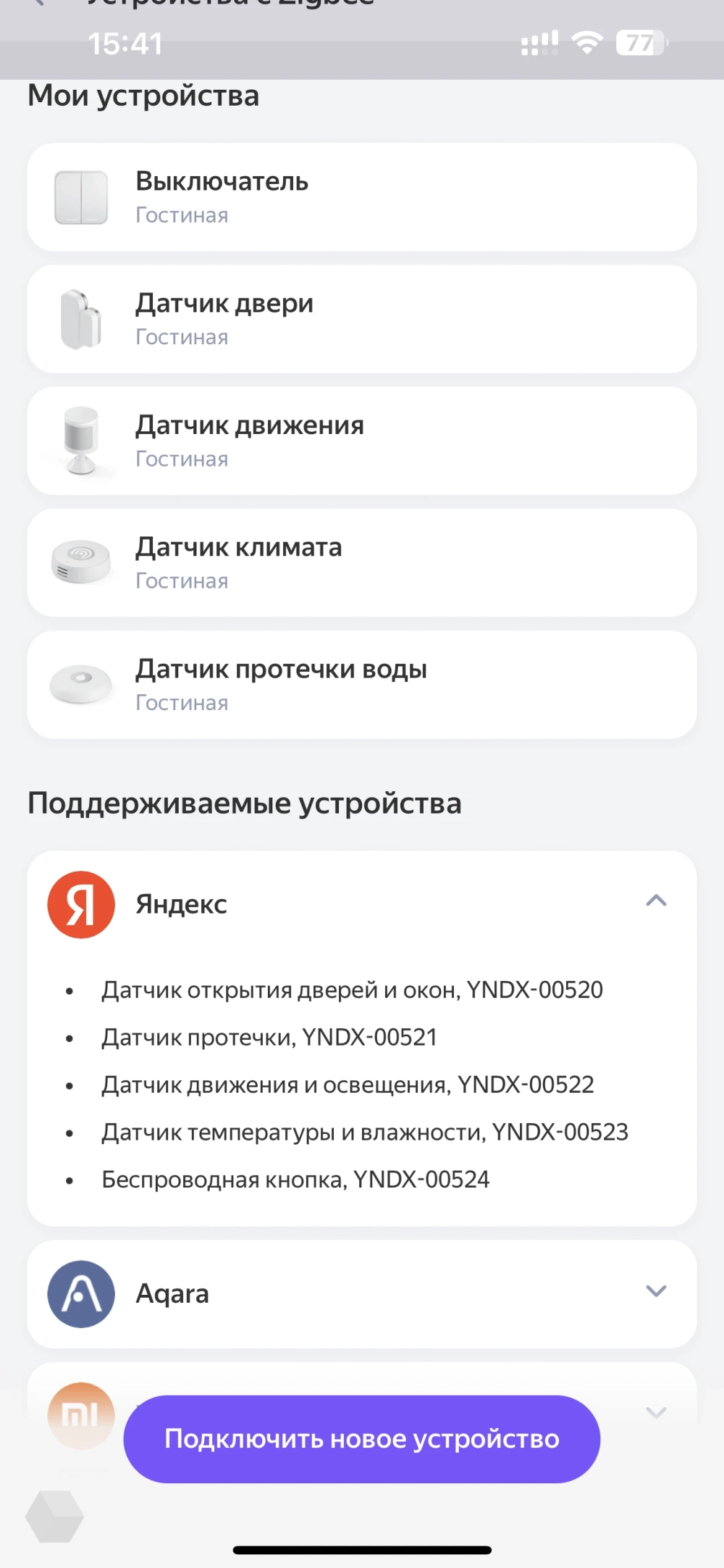 В случае устройств с поддержкой Zigbee всё намного проще. Достаточно включить гаджет и сказать «Алиса, найди устройство». Всё! Оно сразу добавляется в приложение «Умный дом». Дело буквально 15 секунд.