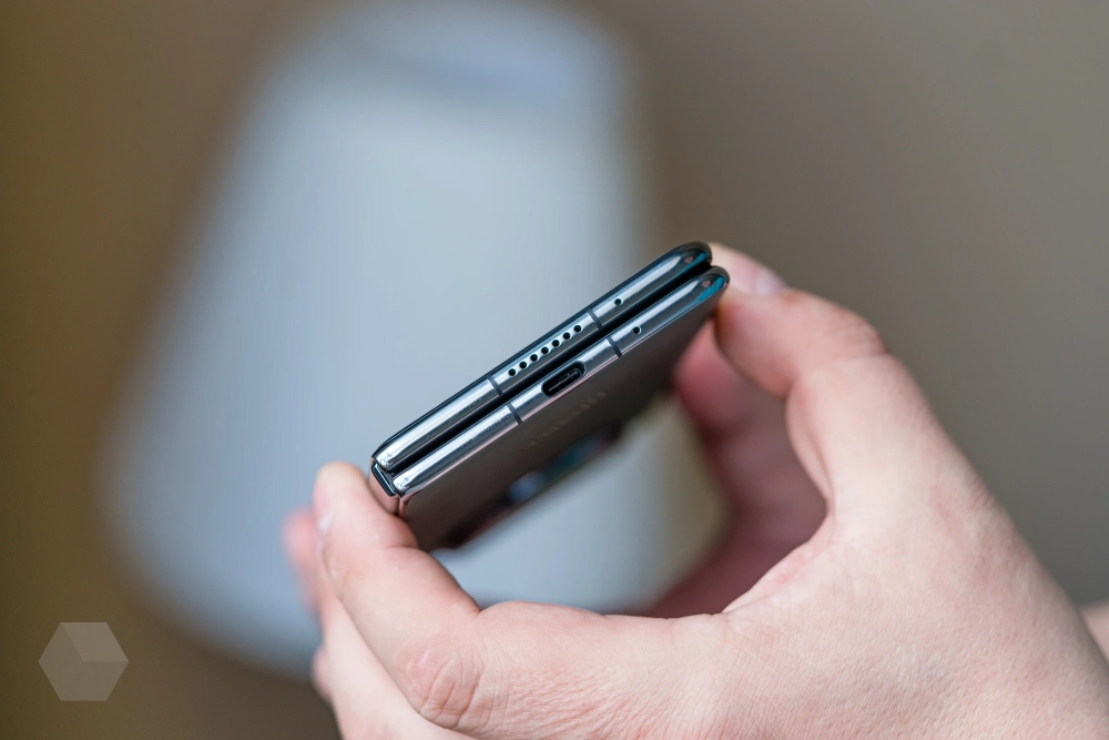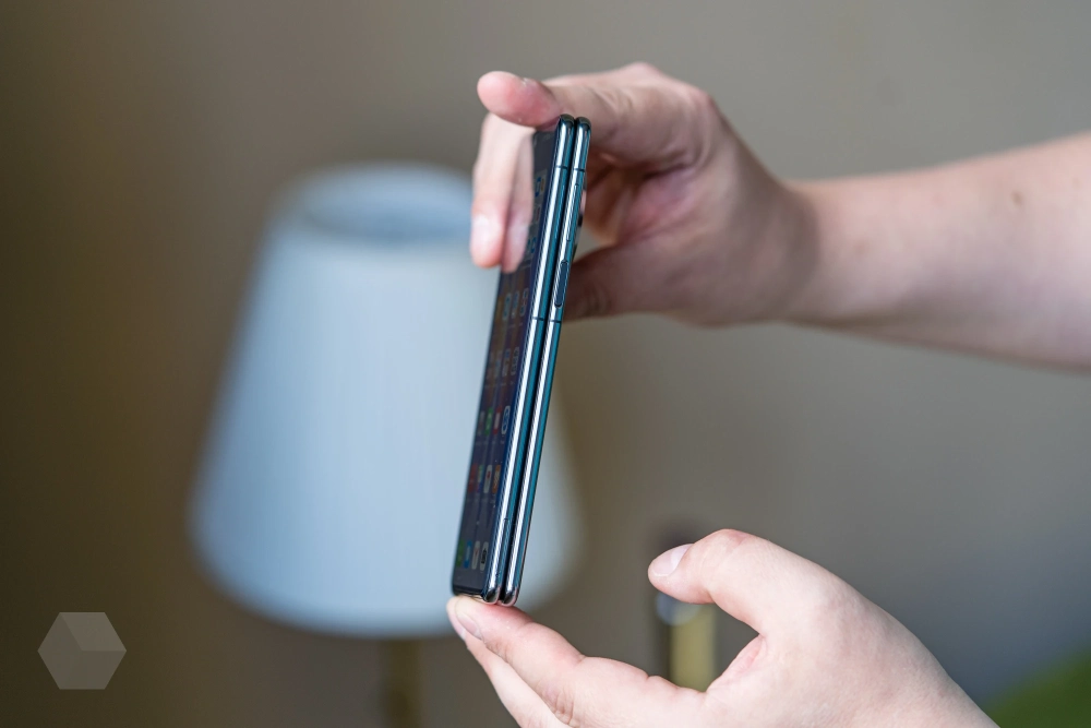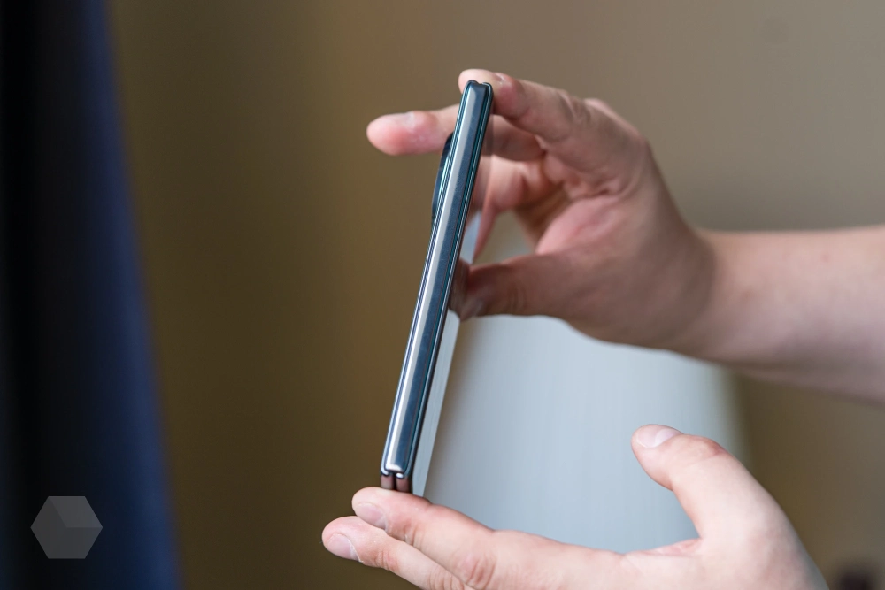 Края створок на металлической боковой рамке слегка закруглены, потому пальцы легко захватывают половинки из-за образующейся между ними ложбинки при открывании. Щели между двумя закрытыми половинками нет, но небольшой бортик по всему периметру предохраняет части гибкого экрана от соприкосновения друг с другом.