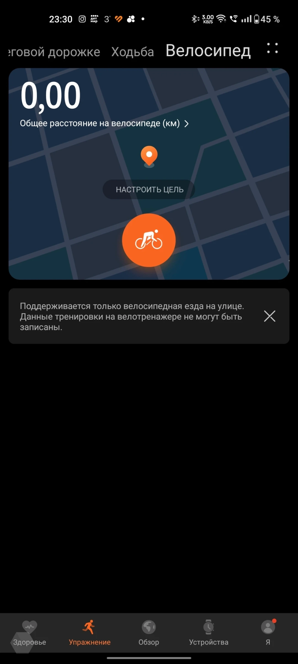 Часы по умолчанию поддерживают следующие виды тренировок: