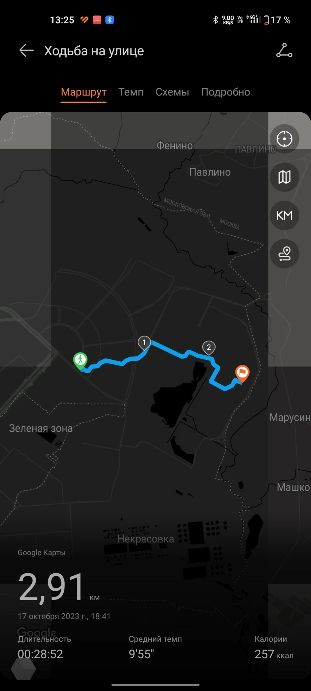 Во время некоторых видов тренировки часы рисуют преодолённый пользователем маршрут благодаря наличию навигации в устройстве. Подключение к спутникам GPS на открытой местности происходит достаточно быстро, не более 20 секунд. По окончании упражнения краткая статистика доступна на экране часов, а более полная сохраняется в Huawei Health.