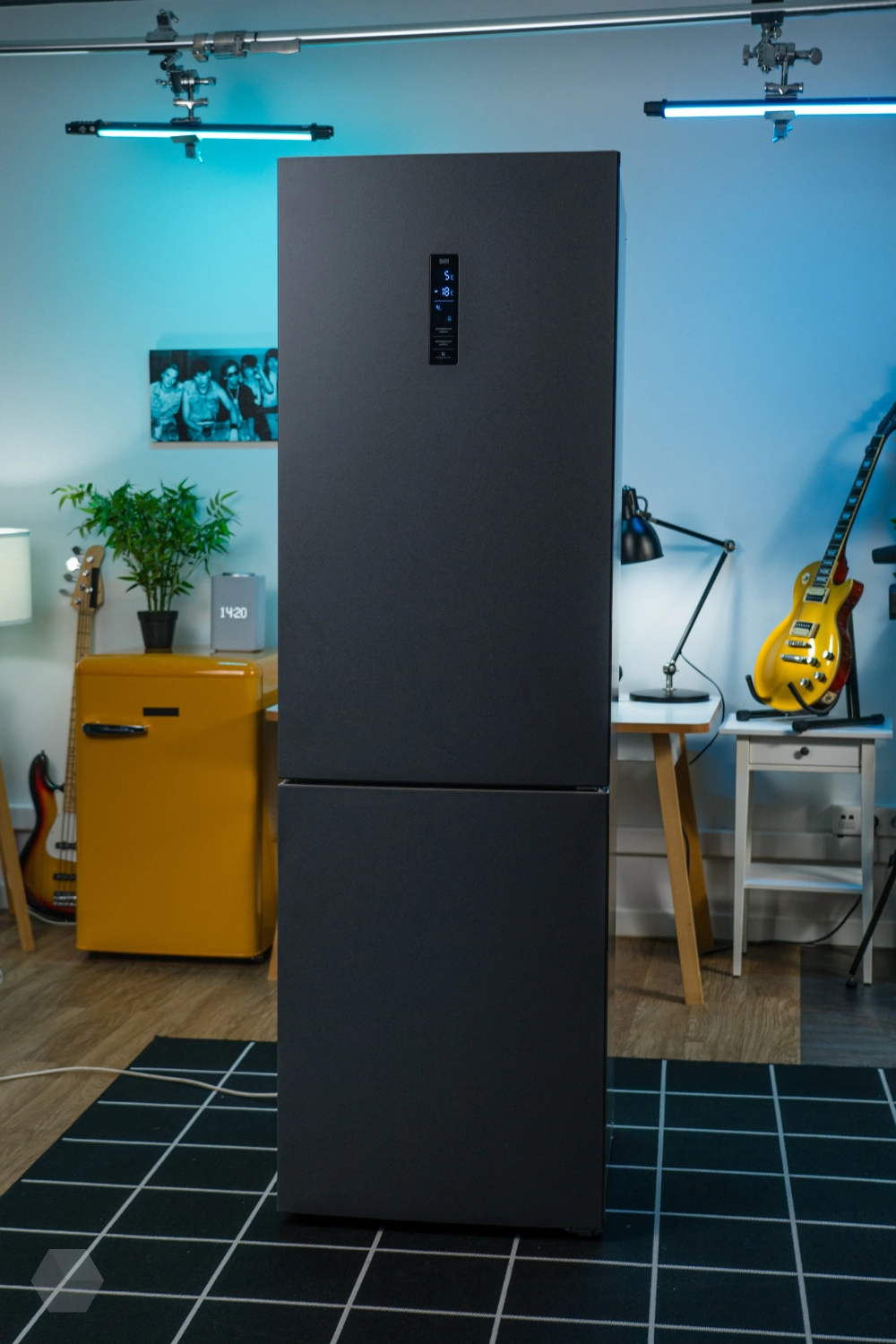 Габариты холодильника стандартные и немаленькие, что намекает на его большой внутренний объём. Ширина обычная, 60 сантиметров, а вот в глубину он уже больше — 68,5 сантиметров. Высота составляет 195 сантиметров.
