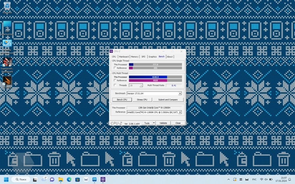 Результат в CPU-Z для сбалансированного режима в нагрузке на одно ядро получился 777,9 баллов, а на все ядра — 6540,9.