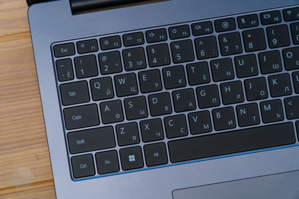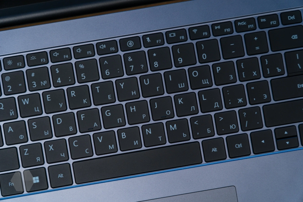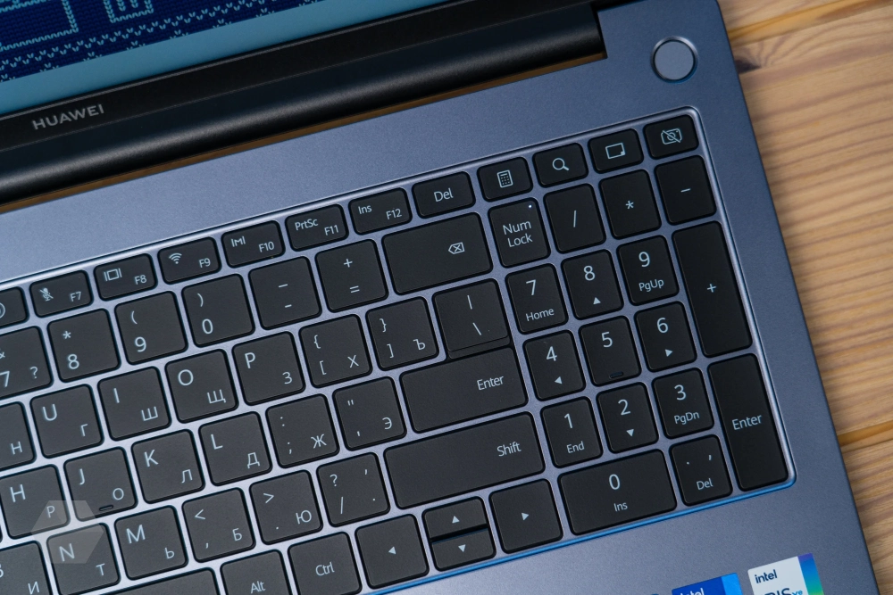 Клавиатура в MateBook D 16 2024 полноразмерная с цифровым блоком клавиш. Последний также содержит в себе дополнительные кнопки, позволяющие запустить калькулятор, выполнить поиск, уменьшить или свернуть активное окно, а также физически выключить камеру.