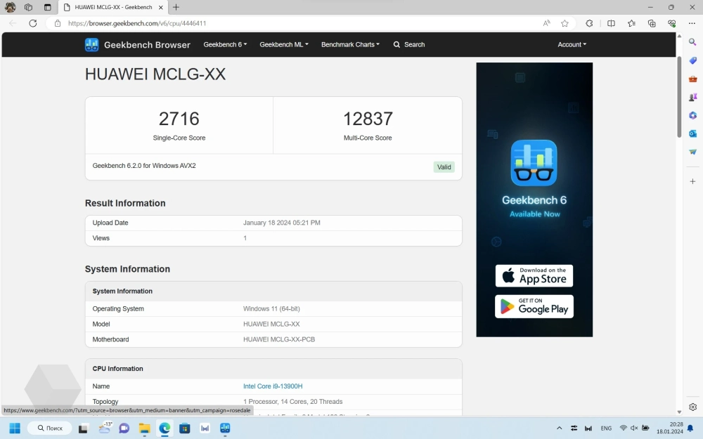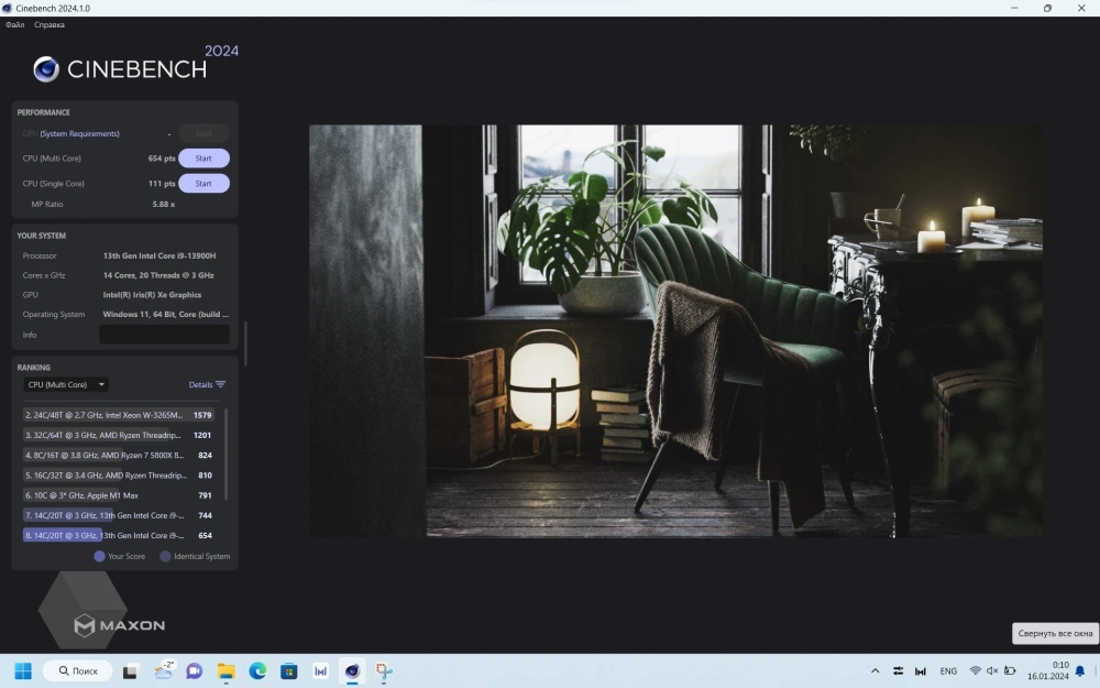Скажу вполне очевидную вещь, что по производительности Core i9 сильно отличается от Core i7, и уж тем более от Core i5 и Core i3, поэтому все представленные ниже тесты соответствуют только для MateBook D16 в конфигурации с Core i9-13900H. Для других вариантов результаты будут более скромные.