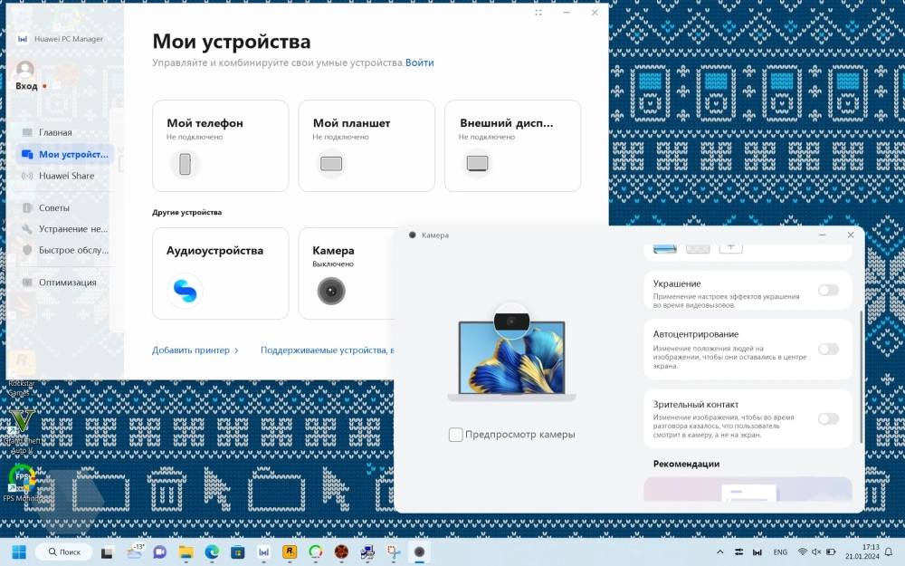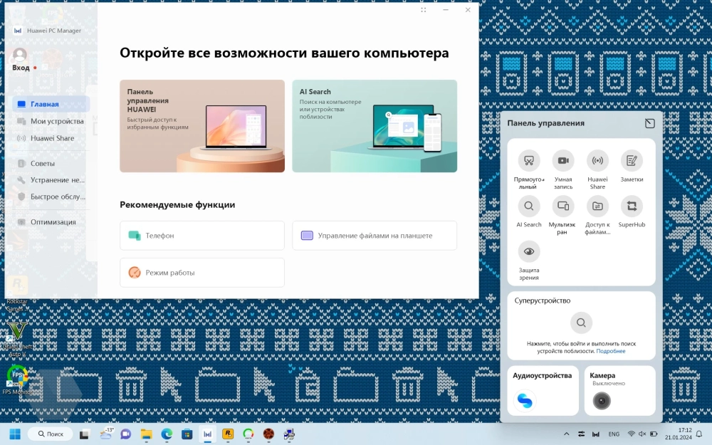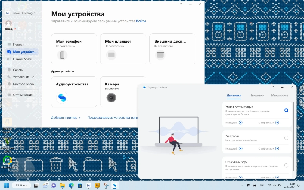 Как и все ноутбуки Huawei, которые поставляются с предустановленной ОС, в MateBook D16 на борту присутствует приложение Huawei PC Manager, имеющие широкие возможности. Например, с помощью данного ПО можно подключать другие устройства производителя в единую экосистему. Это позволяет не только управлять ими, но и расширять их возможности.