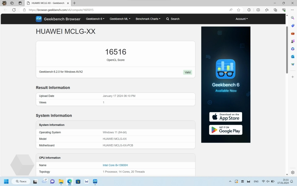 В Geekbench 6 в сбалансированном режиме процессору удалось набрать 1323 балла в Single-Core и 7704 в Multi-core. В производительном — 2716 и 12 837 баллов, соответственно.