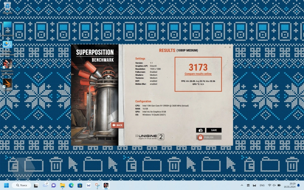 Несмотря на то что, ноутбук, как упоминалось выше, не является игровым, но это не значит, что на нём нельзя поиграть вовсе. В тесте Geekbench 6 встроенная видеокарта набирает до 16516 баллов, а в Superposition — 3173.