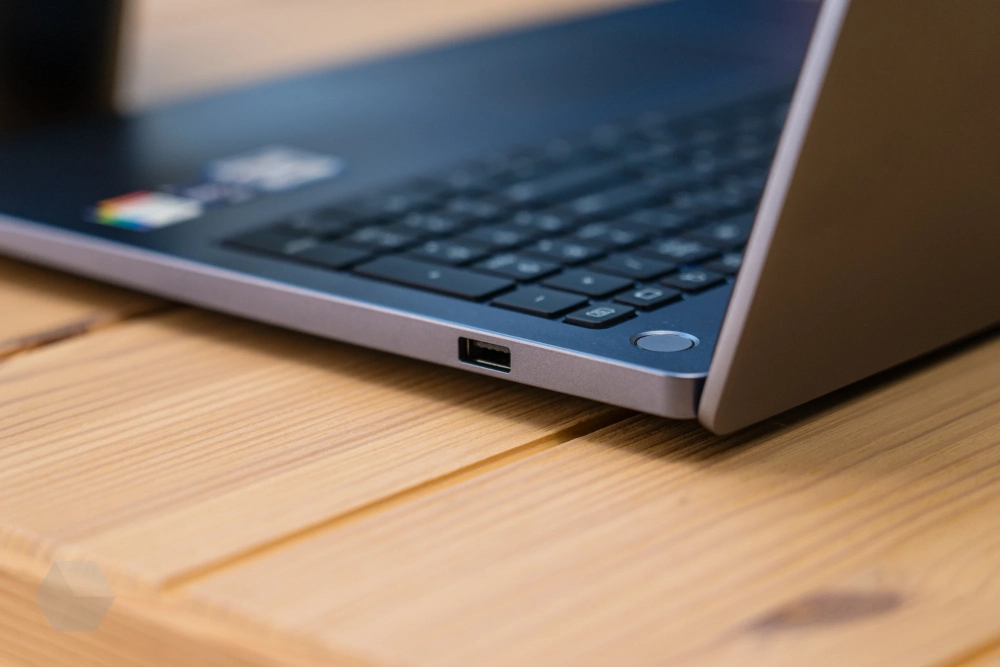 Все разъёмы ноутбука находятся по обоим бокам корпуса устройства. И здесь можно найти ещё одно различие от прошлогодней модели. Слева теперь не два Type-C порта, а один, зато вместо второго — более традиционный Type-A. Оба гнезда имеют версию USB 3,2 Gen 1, обеспечивающую скорость передачи данных до 5 Гигабит в секунду.