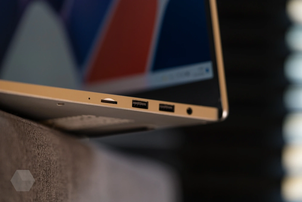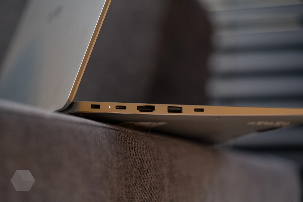 Предыдущие модели серии мы хвалили за большое количество портов, и этот ноутбук не будет исключением. Изменения есть, они пусть и минимальные, но в целом позитивные: порт USB-A 3.0 уступил место чуть более быстрому в формате 3.1. Он разместился слева вместе с двумя портами USB Type-C (один из них – для зарядки), HDMI 1.4 и отверстием для замка безопасности.