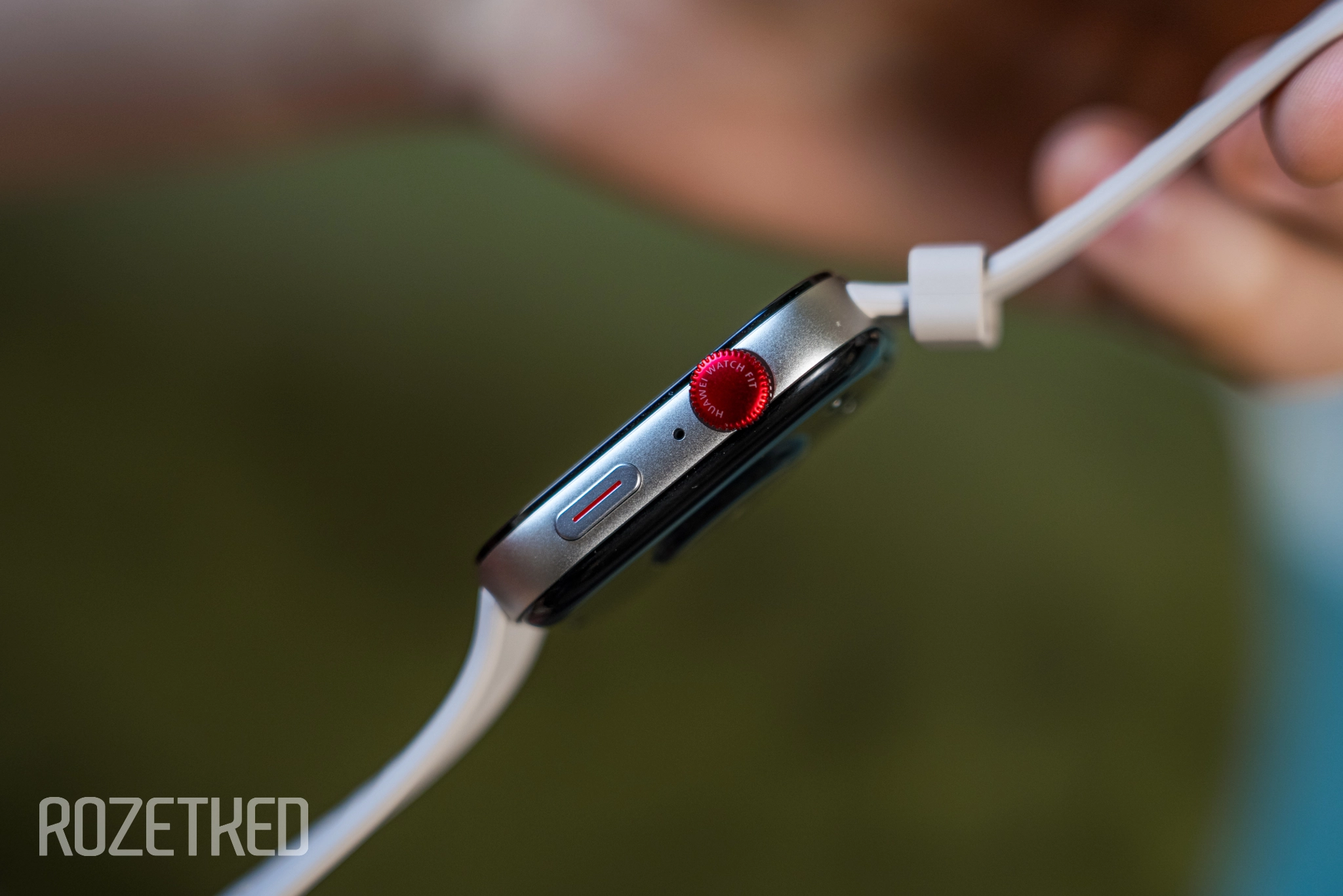 Часы получили немаленький встроенный аккумулятор ёмкостью 400 мАч, что позволяет часам работать до 10 дней в щадящем режиме эксплуатации. На деле часы работают поменьше, но на это влияет такое множество факторов (GPS, количество тренировок в день, их продолжительность, частота отслеживания показаний, прослушивание музыки, разговоры через микрофон и даже громкость встроенных голосовых команд), что общее время от зарядки до зарядки будет сильно разниться.