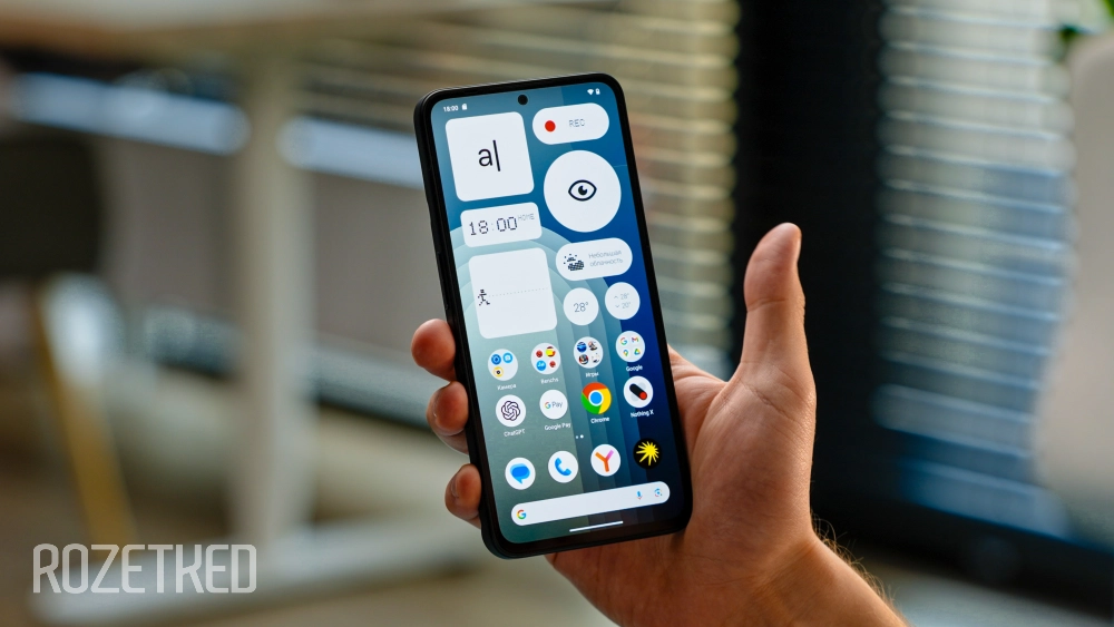 CMF Phone 1 работает на Android 14 с оболочкой Nothing OS 2.6. Дизайн знакомый по прошлым устройствам Nothing. Фирменные иконки, шрифты и виджеты — всё на месте. Разработчики добавили интеграцию с ChatGPT. Если есть наушники от Nothing или CMF, через них можно пообщаться с ботом.