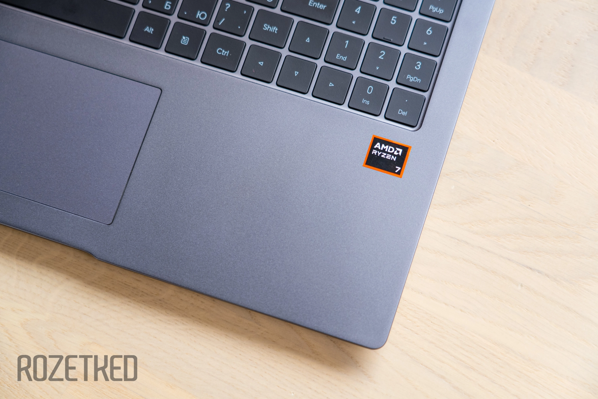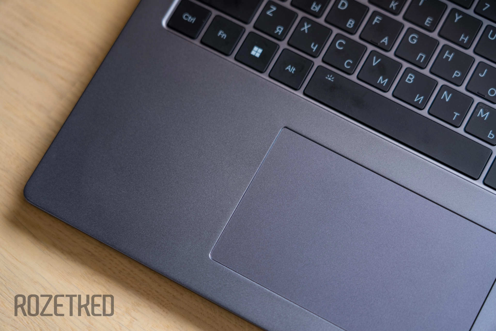 Тачпад расположен на нижней трети палубы. Так как клавиатура в нашем случае полноразмерная, то сенсорная панель занимает не строго центральное положение, а чуть смещена влево.