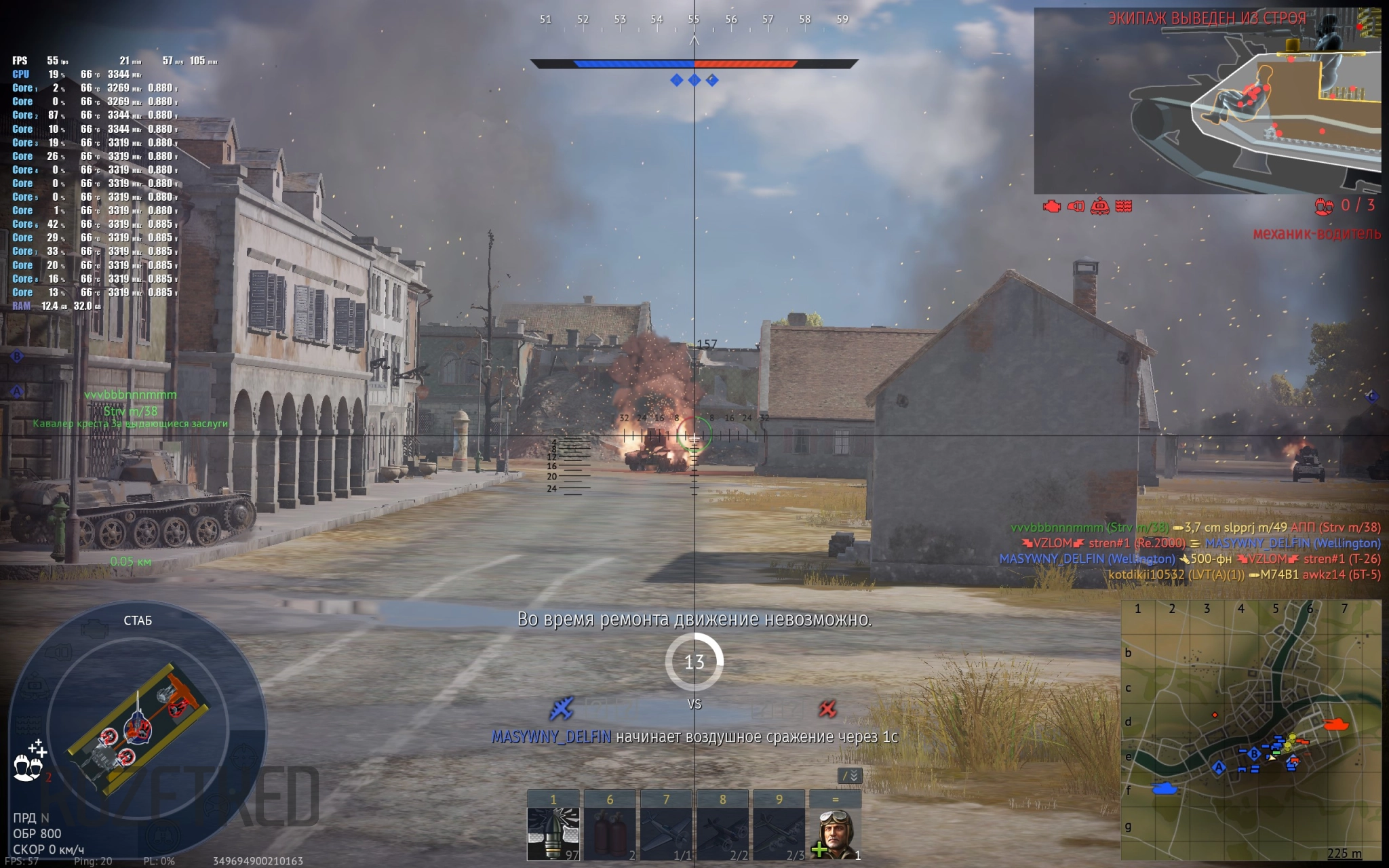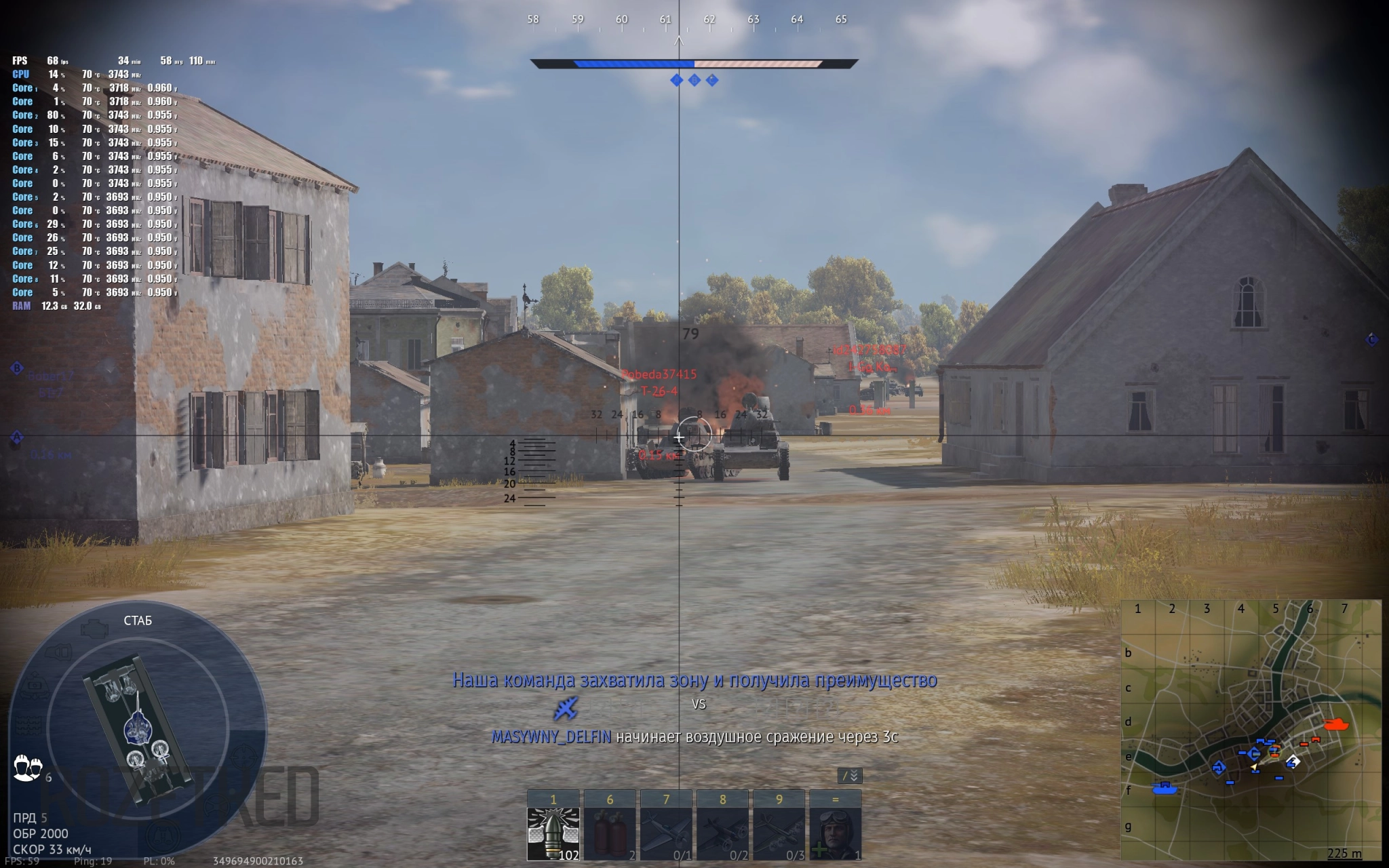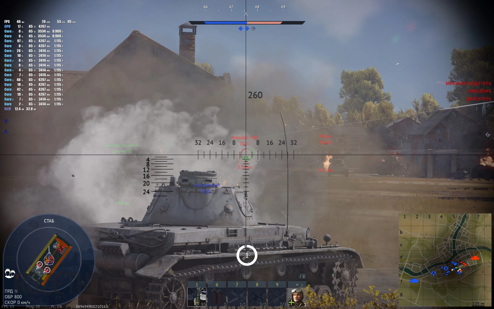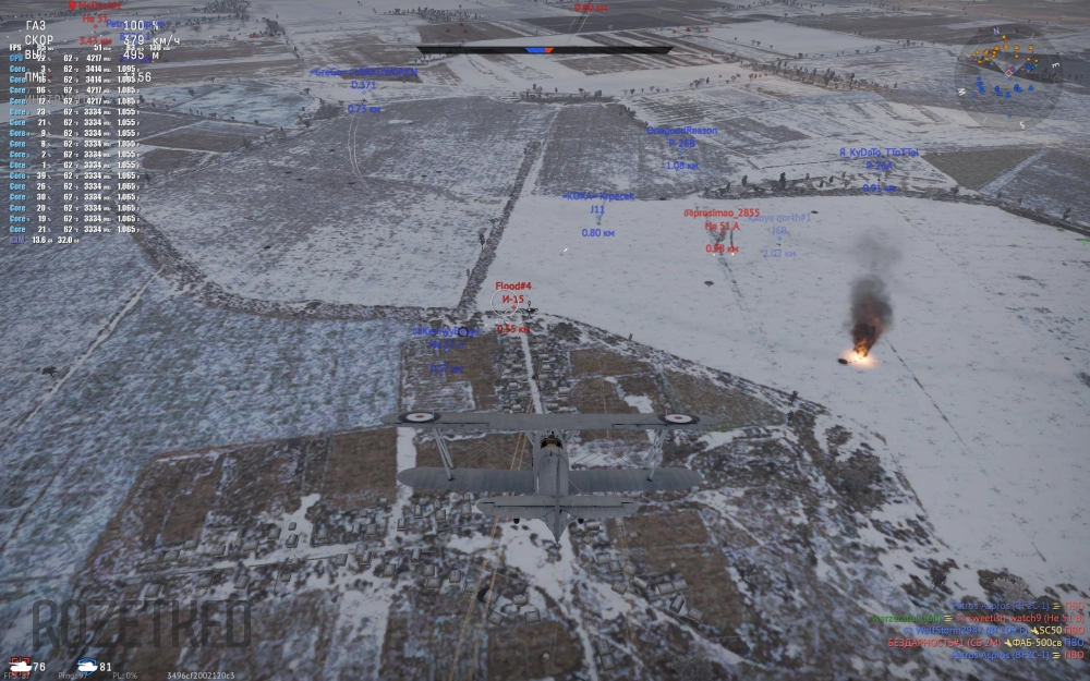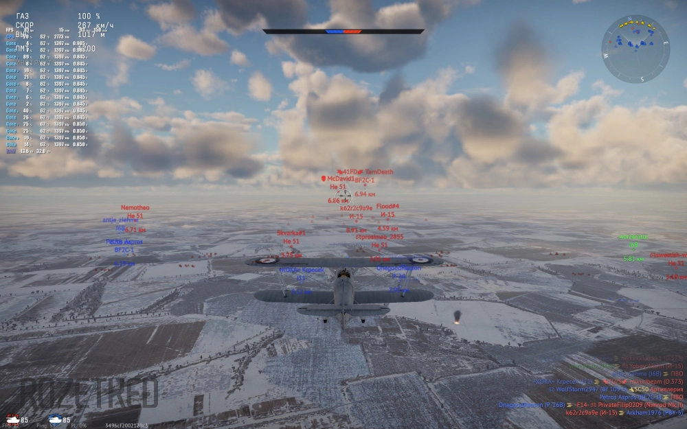 В танковых боях количество кадров в секунду уверенно держится на уровне 50-60 FPS. А на самолётах эти цифры даже больше, в районе 80-90 кадров.