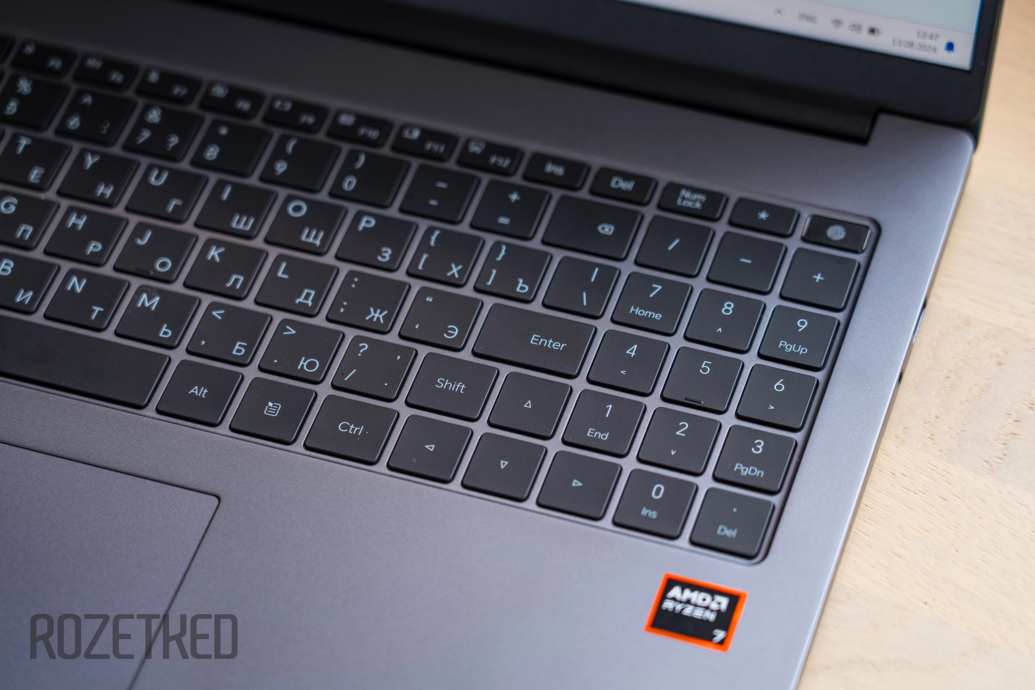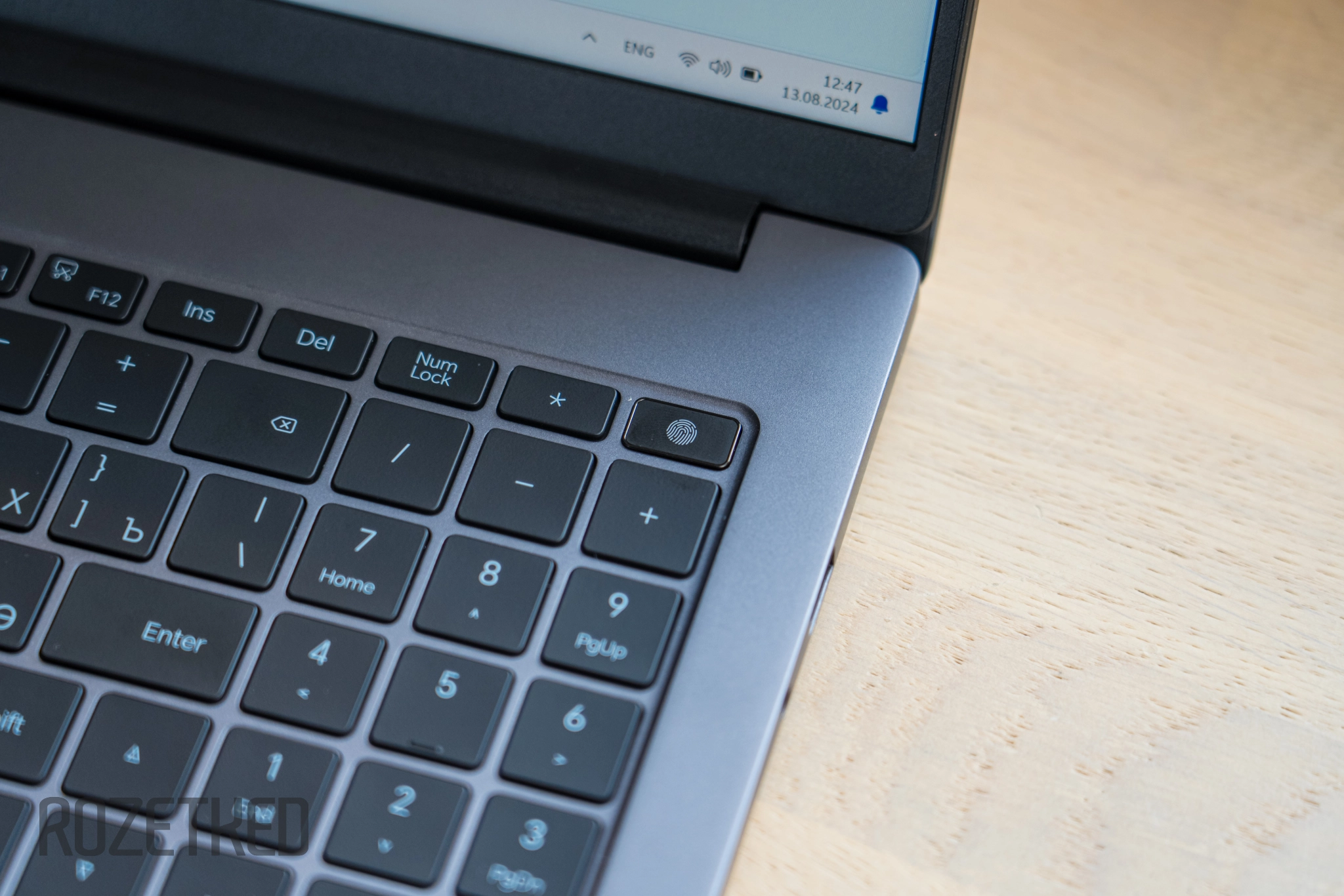 Кнопка включения находится в общем ряду с остальными клавишами и занимает место в правом верхнем углу клавиатуры. Кроме своего основного назначения она также оснащена дактилоскопическим датчиком. Разблокировка таким методом удобна, само распознавание отпечатков пальцев быстрое и безошибочное.