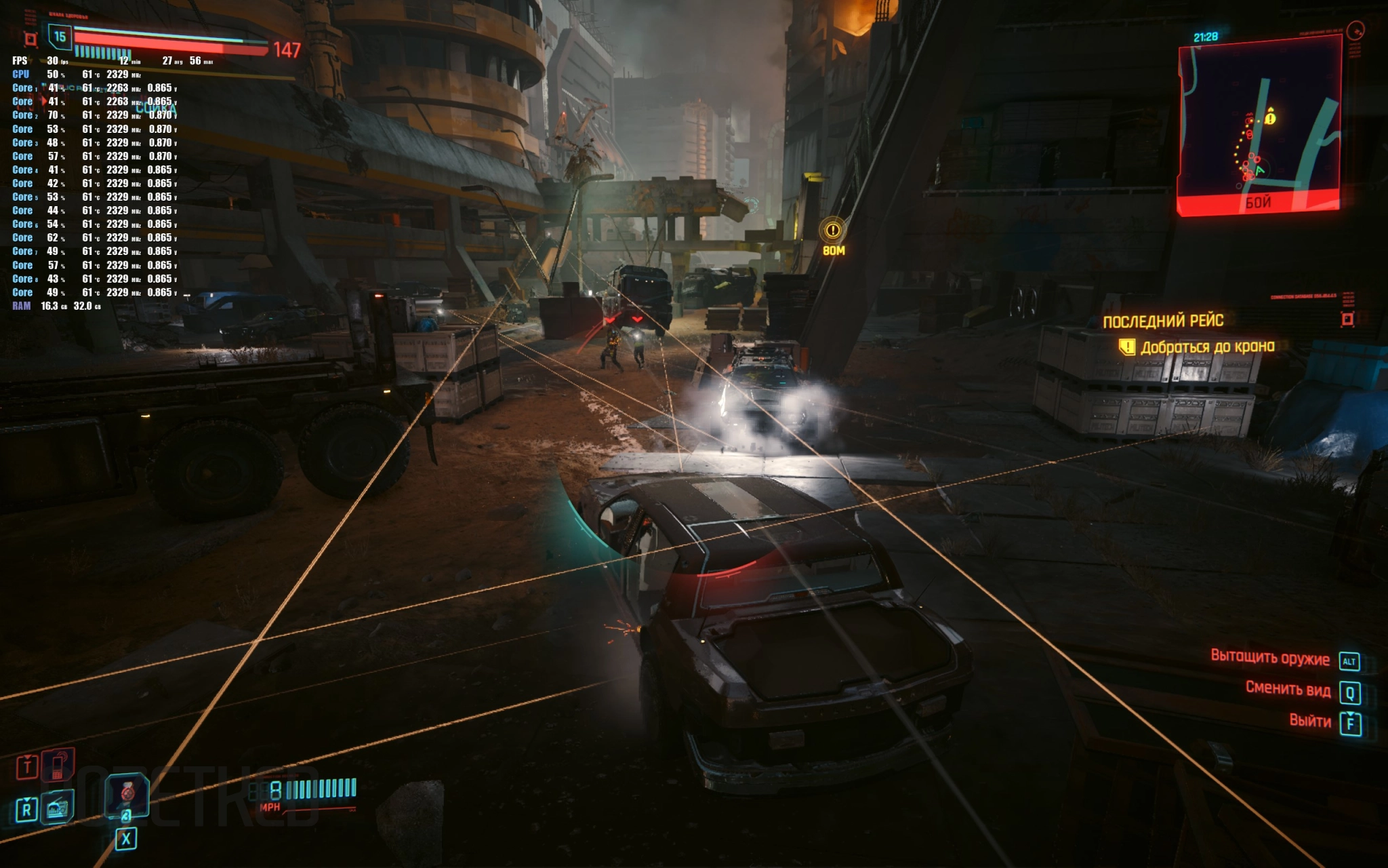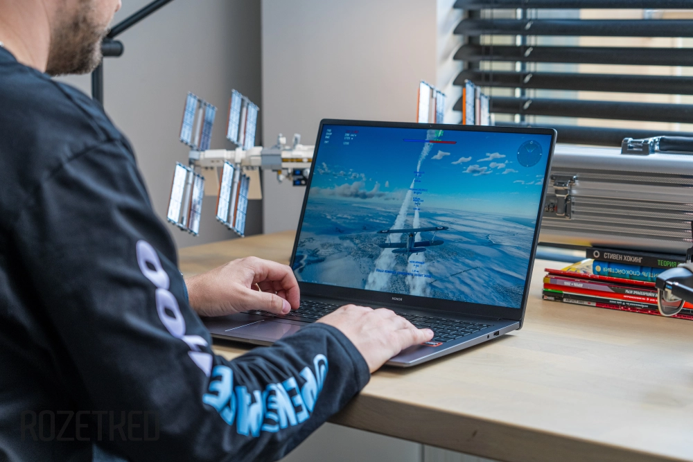 Но MagicBook X16 Plus справляется и с более требовательными играми. Например, тот же Cyberpunk 2077.