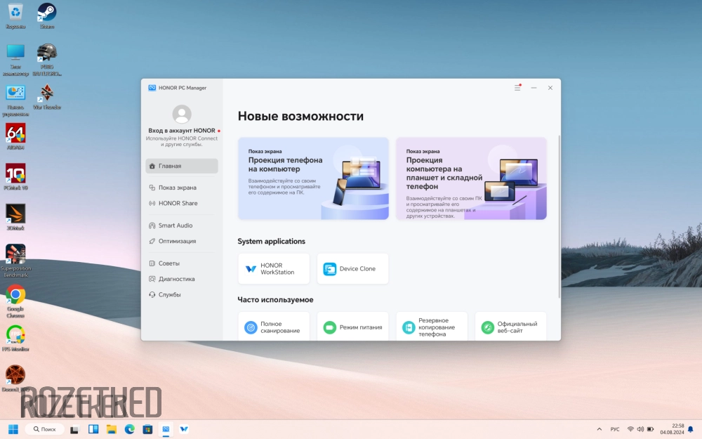 Это позволяет не только управлять девайсами, но и расширять их возможности. А для удобства подключения смартфона достаточно его приложить к тачпаду ноутбука. Именно там у MagicBook X16 Plus расположен NFC-чип.